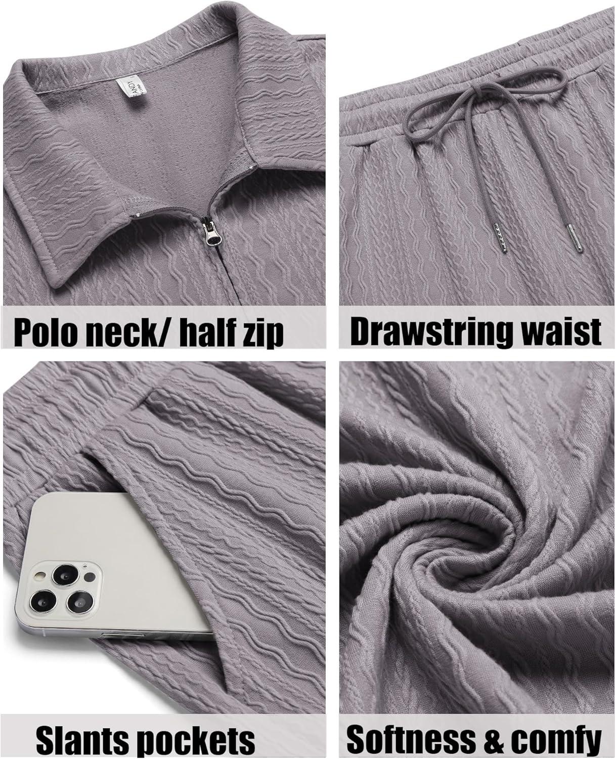 COOFANDY Men's 2 Pieces Outfits Casual Quarter Zip Polo Shirt and Shorts Set Athletic Jogging Summer Tracksuit(Light Grey)