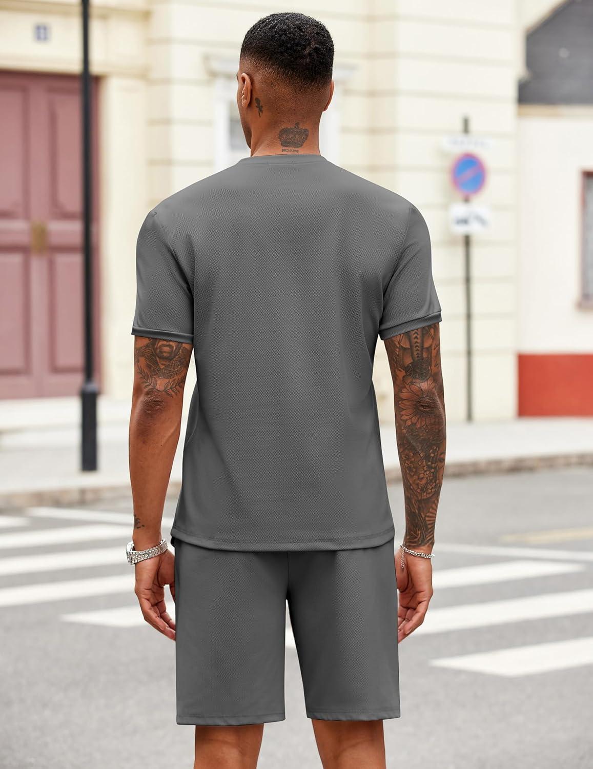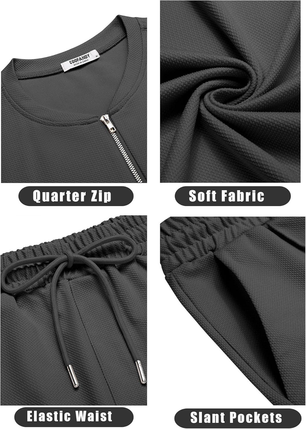 COOFANDY Men’s 2 Pieces Outfits Casual Quarter Zip Polo T Shirt and Shorts Set Athletic Jogging Summer Tracksuit(Dark Grey)