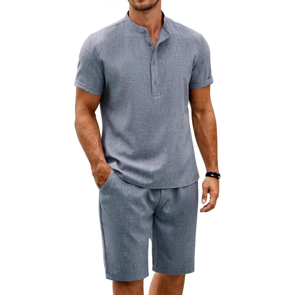 Be the first to review “COOFANDY Men’s 2 Pieces Set Short Sleeve Henley Shirts and Shorts Pants Texture Summer Beach Vacation Outfits(Flecking Navy Blue)”