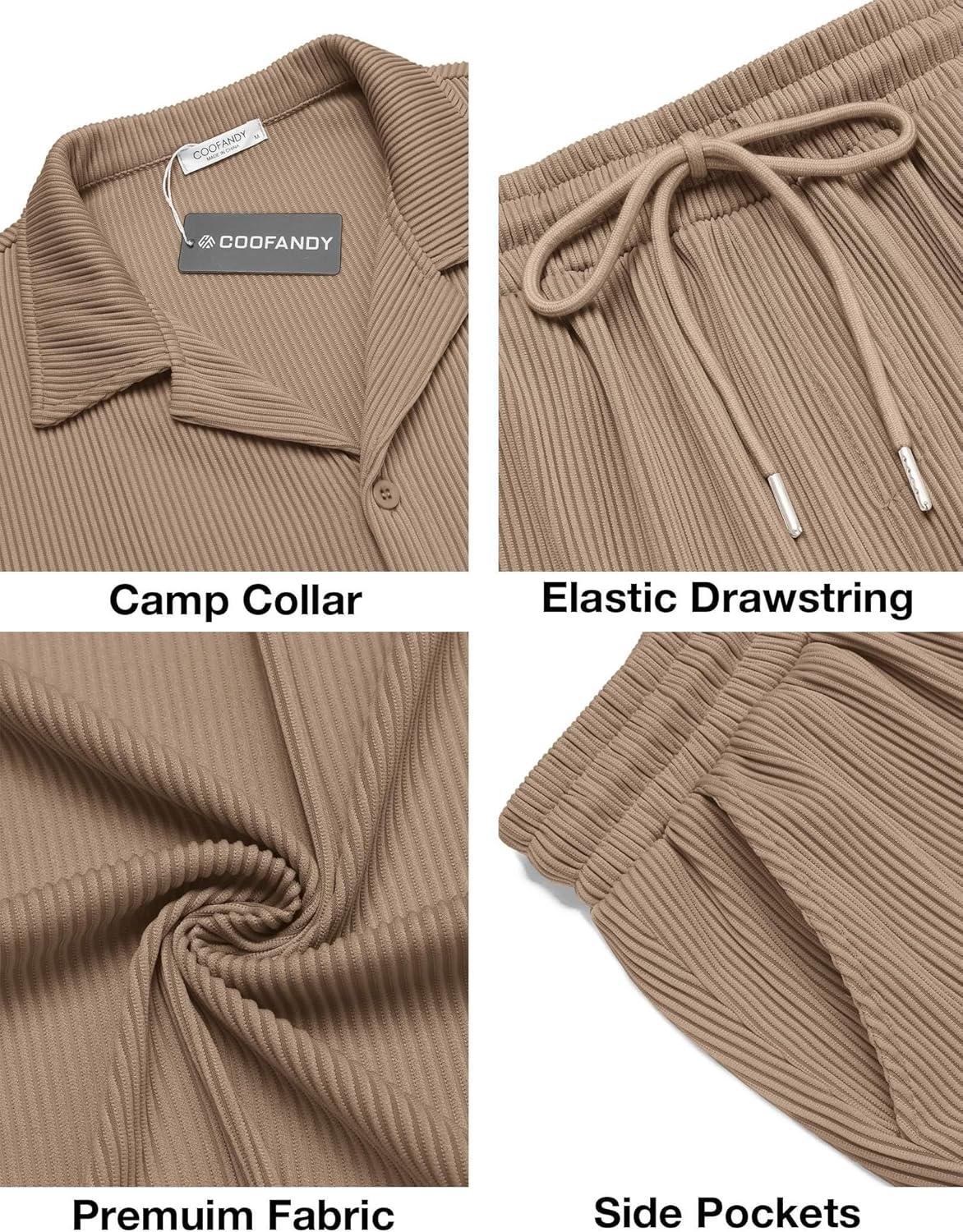 COOFANDY Men’s 2 Pieces Shirt Sets Short Sleeve Casual Button Down Hippie T-Shirts Shorts Sets Summer Fashion Beach Outfits(Brown)