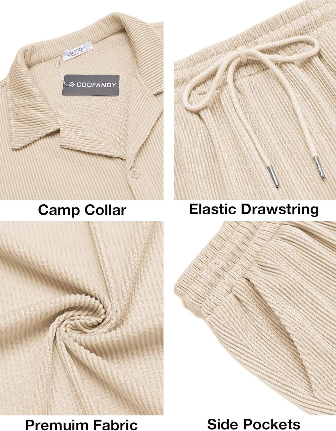 COOFANDY Men's 2 Pieces Shirt Sets Short Sleeve Casual Button Down Hippie T-Shirts Shorts Sets Summer Fashion Beach Outfits(Khaki)