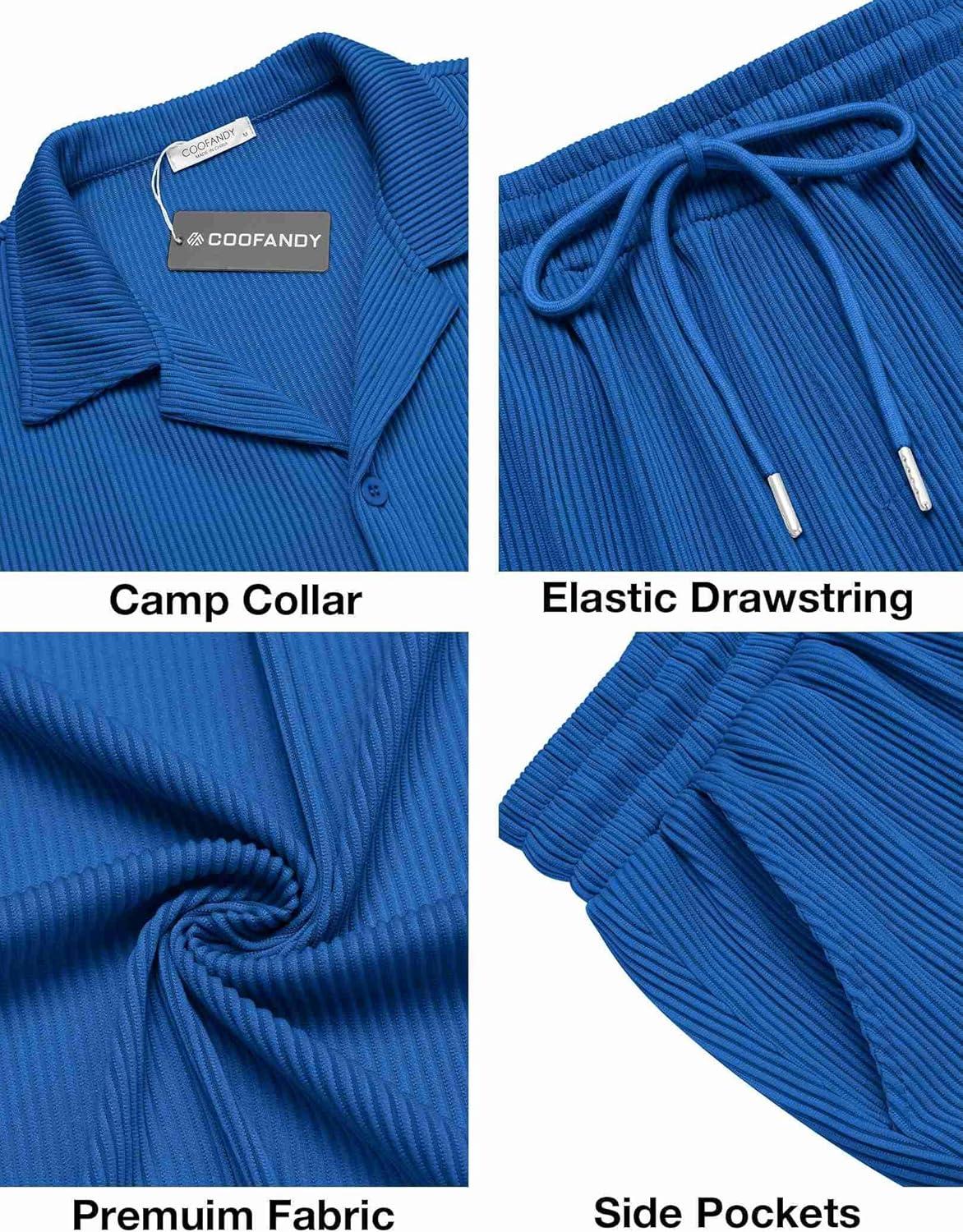 COOFANDY Men’s 2 Pieces Shirt Sets Short Sleeve Casual Button Down Hippie T-Shirts Shorts Sets Summer Fashion Beach Outfits(Royal Blue)