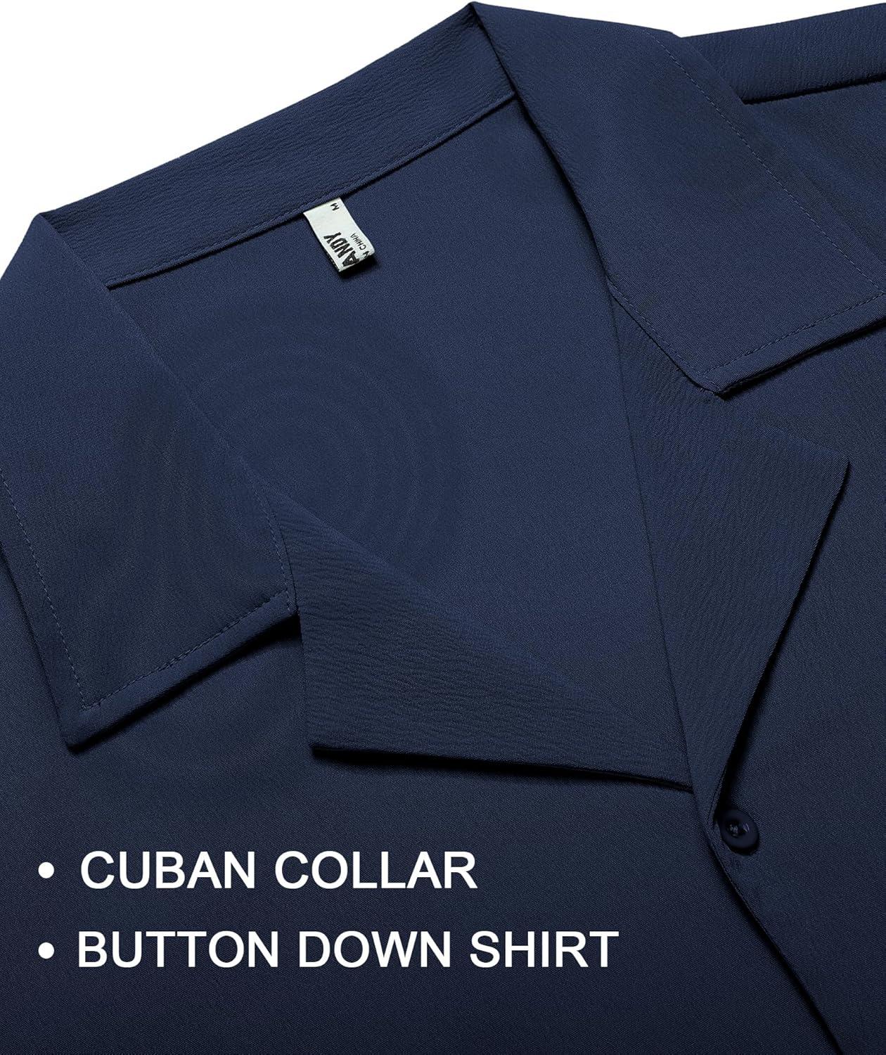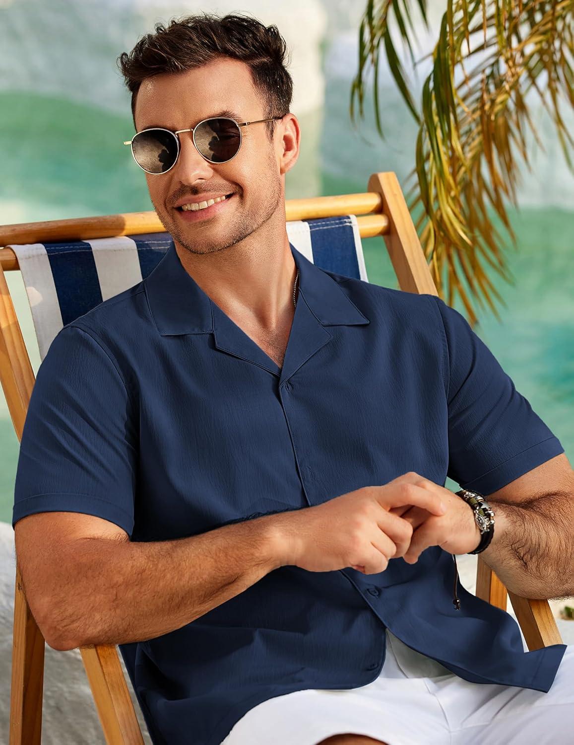 COOFANDY Mens 2025 Fashion Textured Shirts Short Sleeve Summer Beach Shirt Casual Button Down Shirts(Navy Blue)