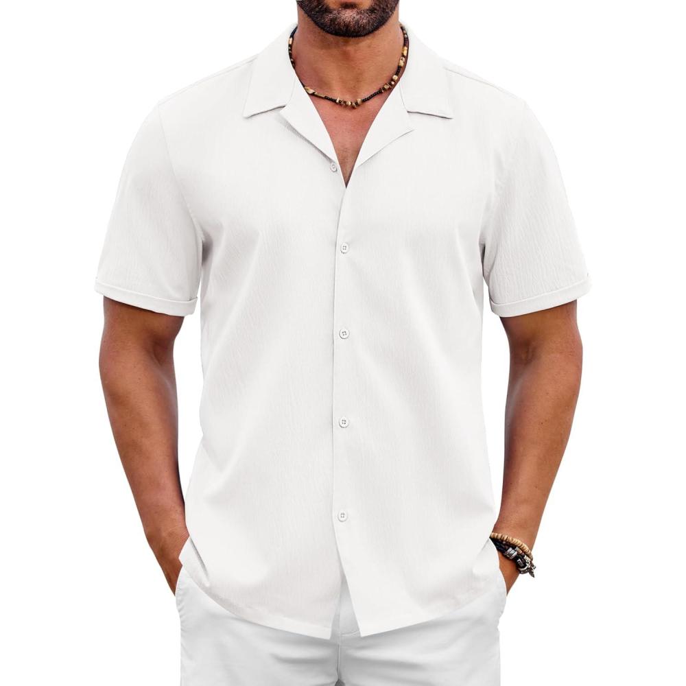 COOFANDY Mens 2025 Fashion Textured Shirts Short Sleeve Summer Beach Shirt Casual Button Down Shirts(White)