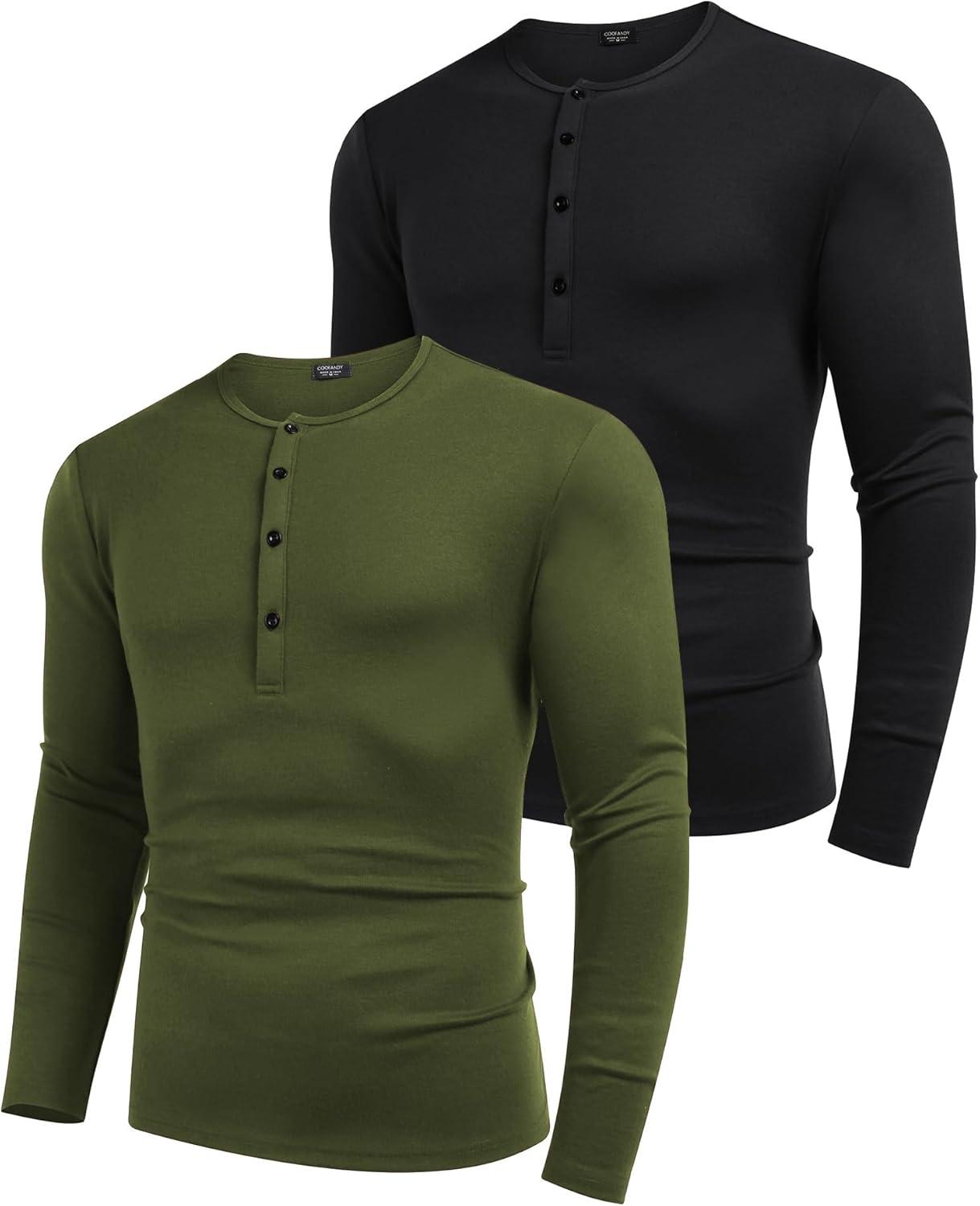 COOFANDY Men's 2Pack Slim Fit Henley Shirts Long Sleeve Lightweight Fashion Casual Cotton Basic T Shirts(Black/Army Green)