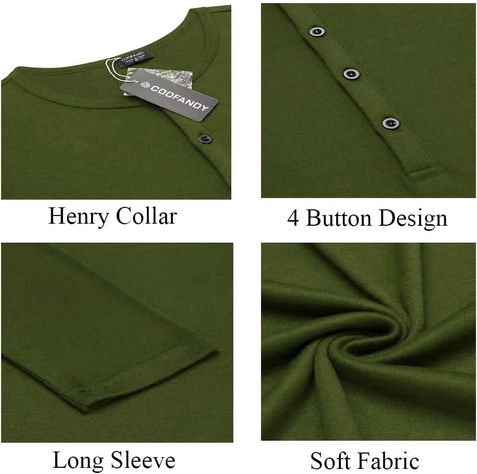 COOFANDY Men’s 2Pack Slim Fit Henley Shirts Long Sleeve Lightweight Fashion Casual Cotton Basic T Shirts(Black/Army Green)