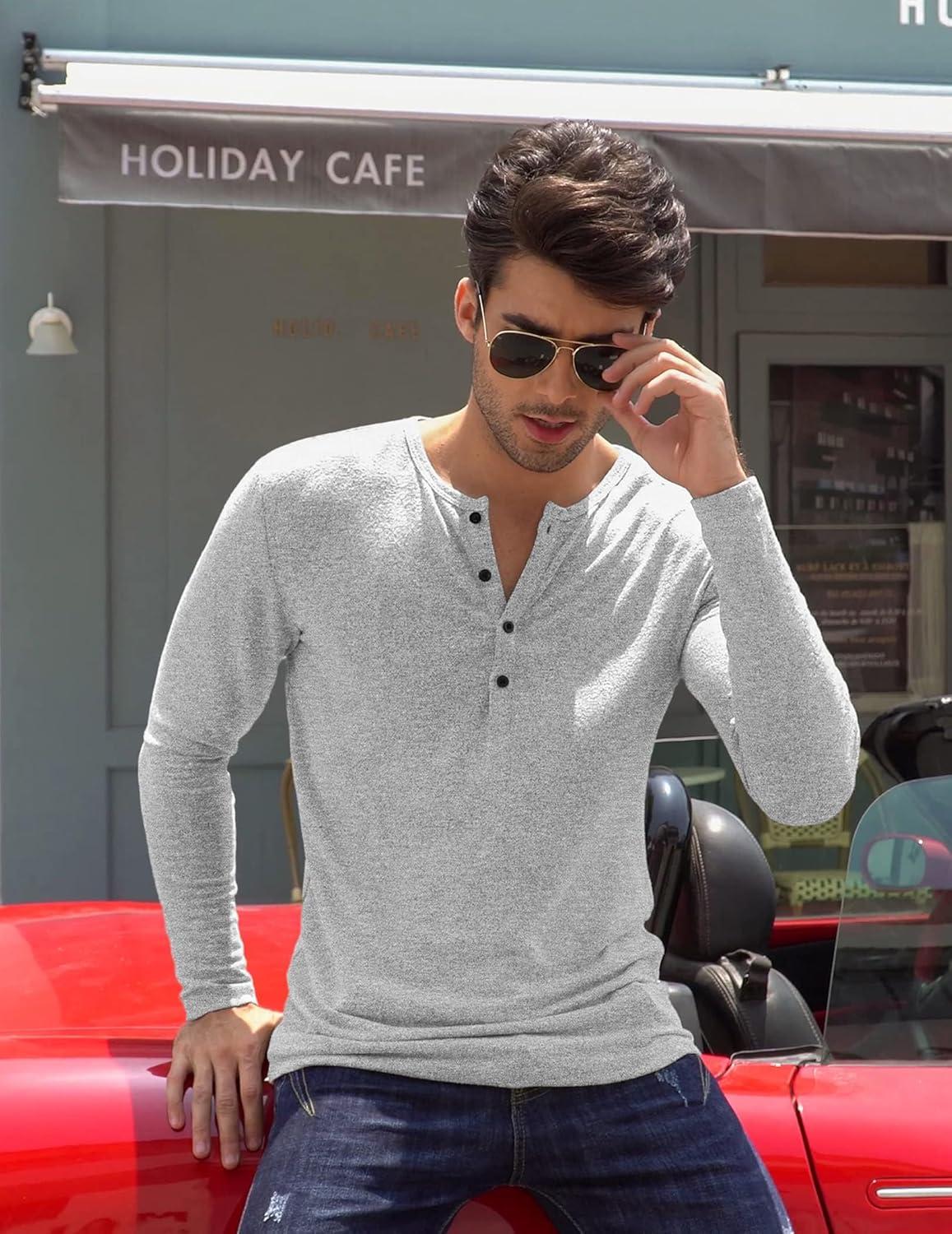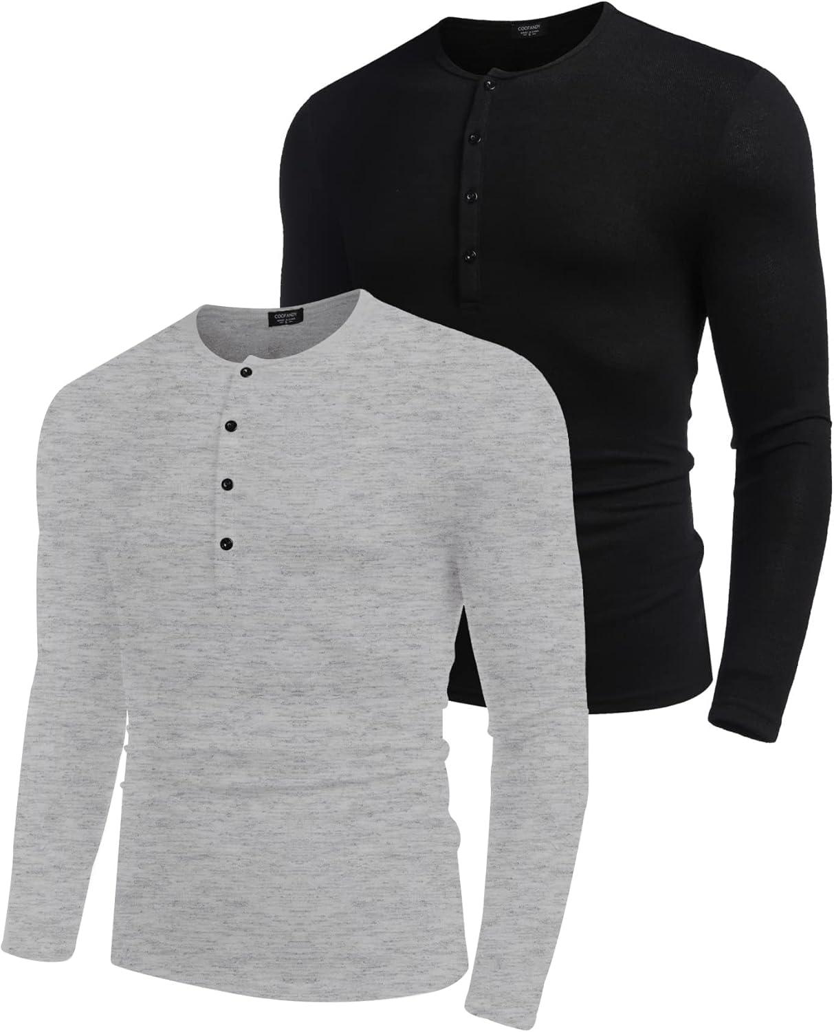 COOFANDY Men's 2Pack Slim Fit Henley Shirts Long Sleeve Lightweight Fashion Casual Cotton Basic T Shirts(Black/Light Gray)