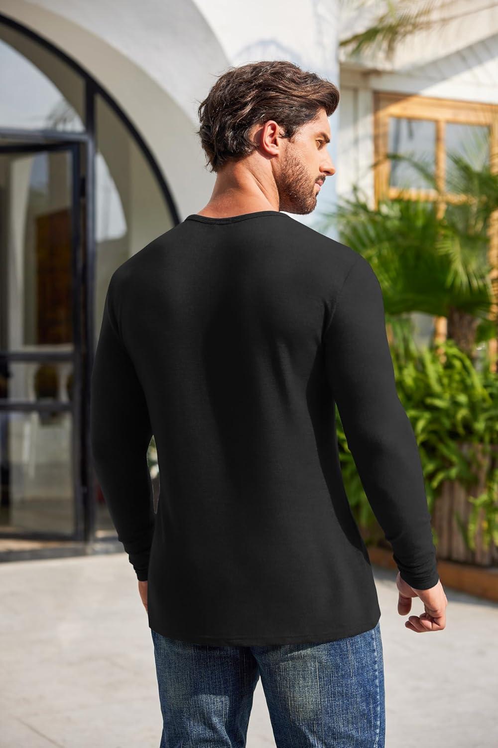 COOFANDY Men’s 2Pack Slim Fit Henley Shirts Long Sleeve Lightweight Fashion Casual Cotton Basic T Shirts(Black)