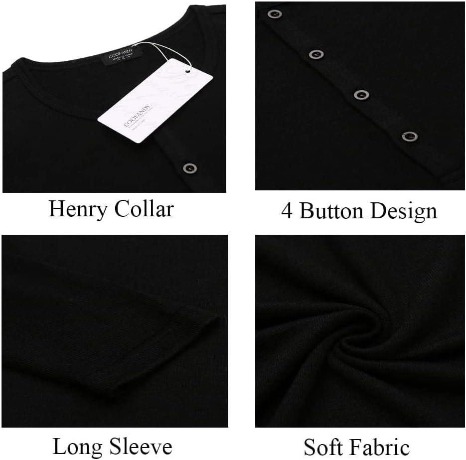 COOFANDY Men's 2Pack Slim Fit Henley Shirts Long Sleeve Lightweight Fashion Casual Cotton Basic T Shirts(Black)