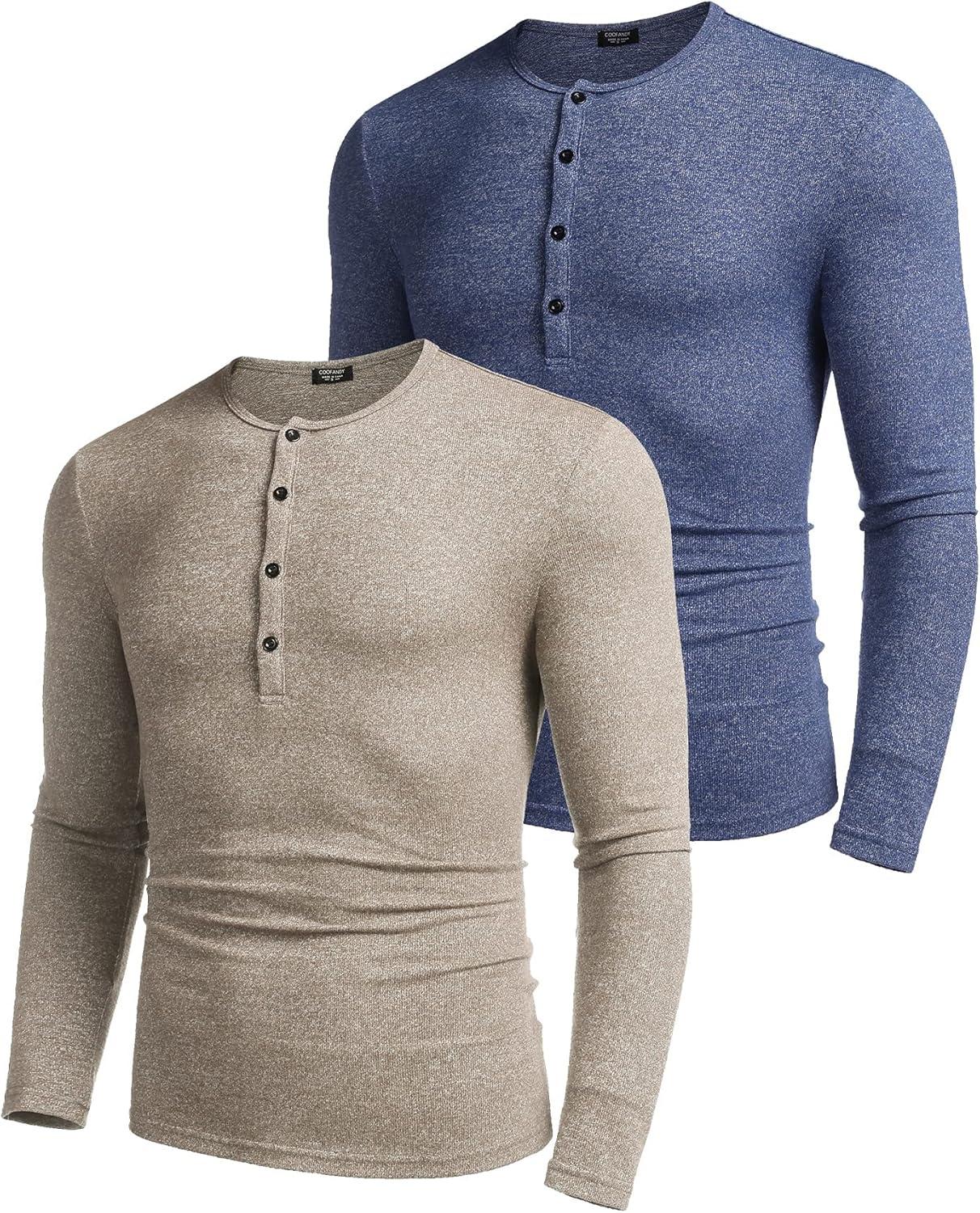 COOFANDY Men’s 2Pack Slim Fit Henley Shirts Long Sleeve Lightweight Fashion Casual Cotton Basic T Shirts(Blue/Khaki)