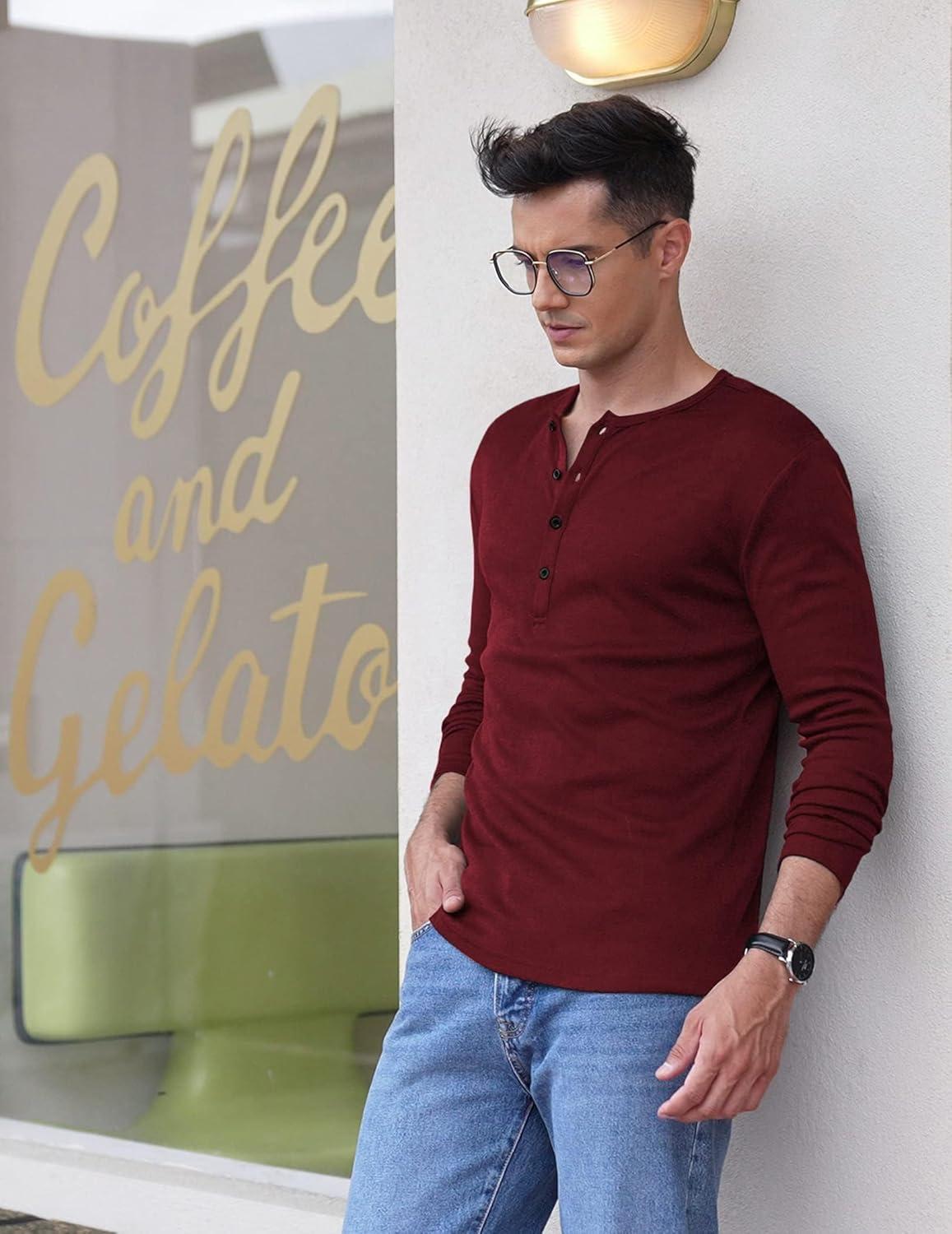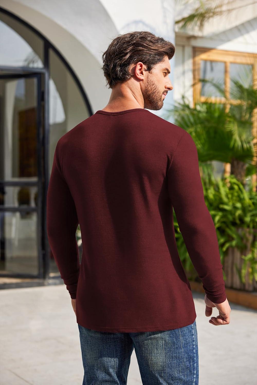 COOFANDY Men's 2Pack Slim Fit Henley Shirts Long Sleeve Lightweight Fashion Casual Cotton Basic T Shirts(Wine Red)