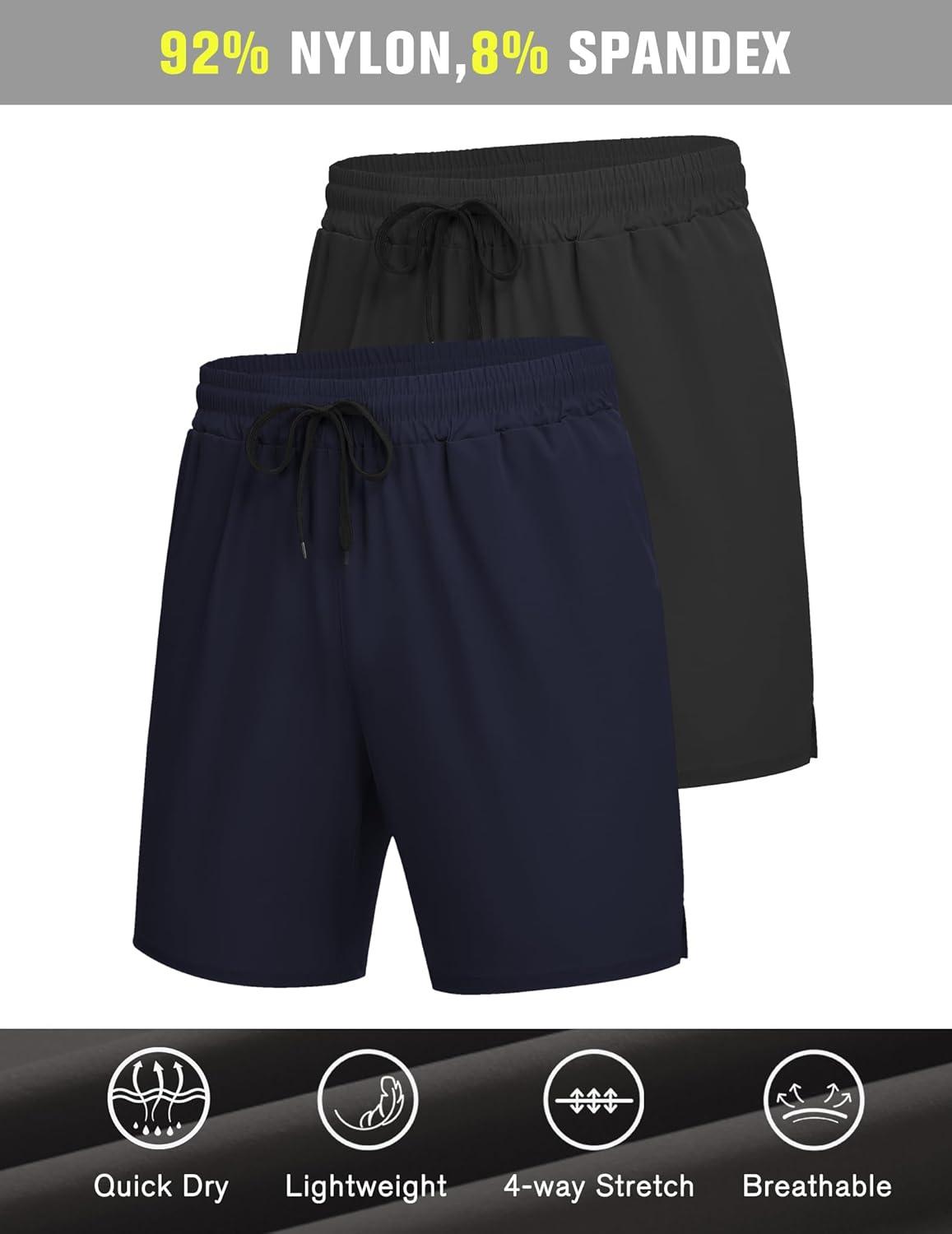 COOFANDY Men’s 3 Pack Athletic Running Shorts Gym Workout Short Quick Dry Sports Short with Pockets(Black/Navy Blue)