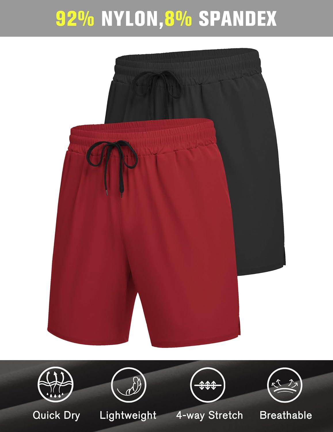 COOFANDY Men’s 3 Pack Athletic Running Shorts Gym Workout Short Quick Dry Sports Short with Pockets(Black/Red)