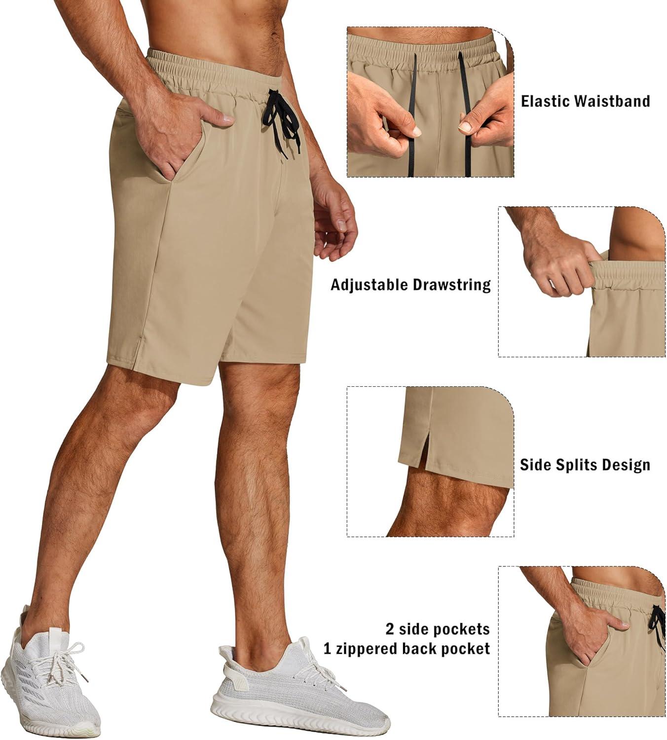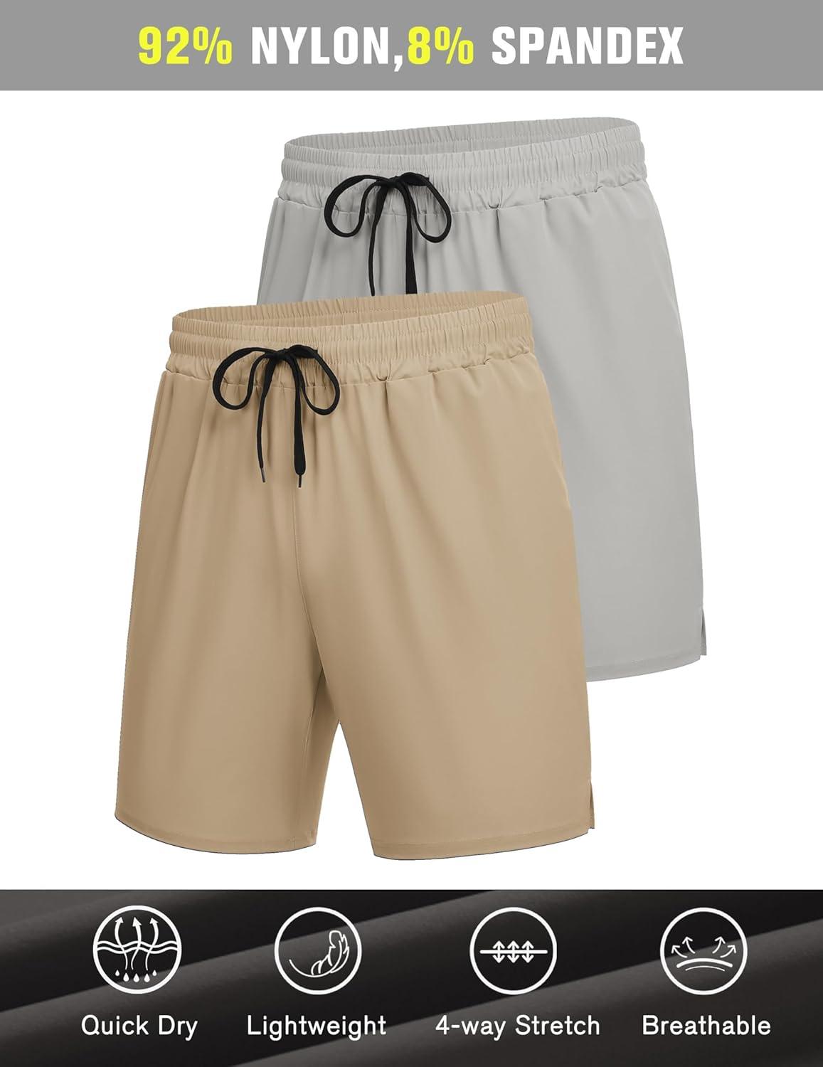 COOFANDY Men's 3 Pack Athletic Running Shorts Gym Workout Short Quick Dry Sports Short with Pockets(Khaki/Grey)