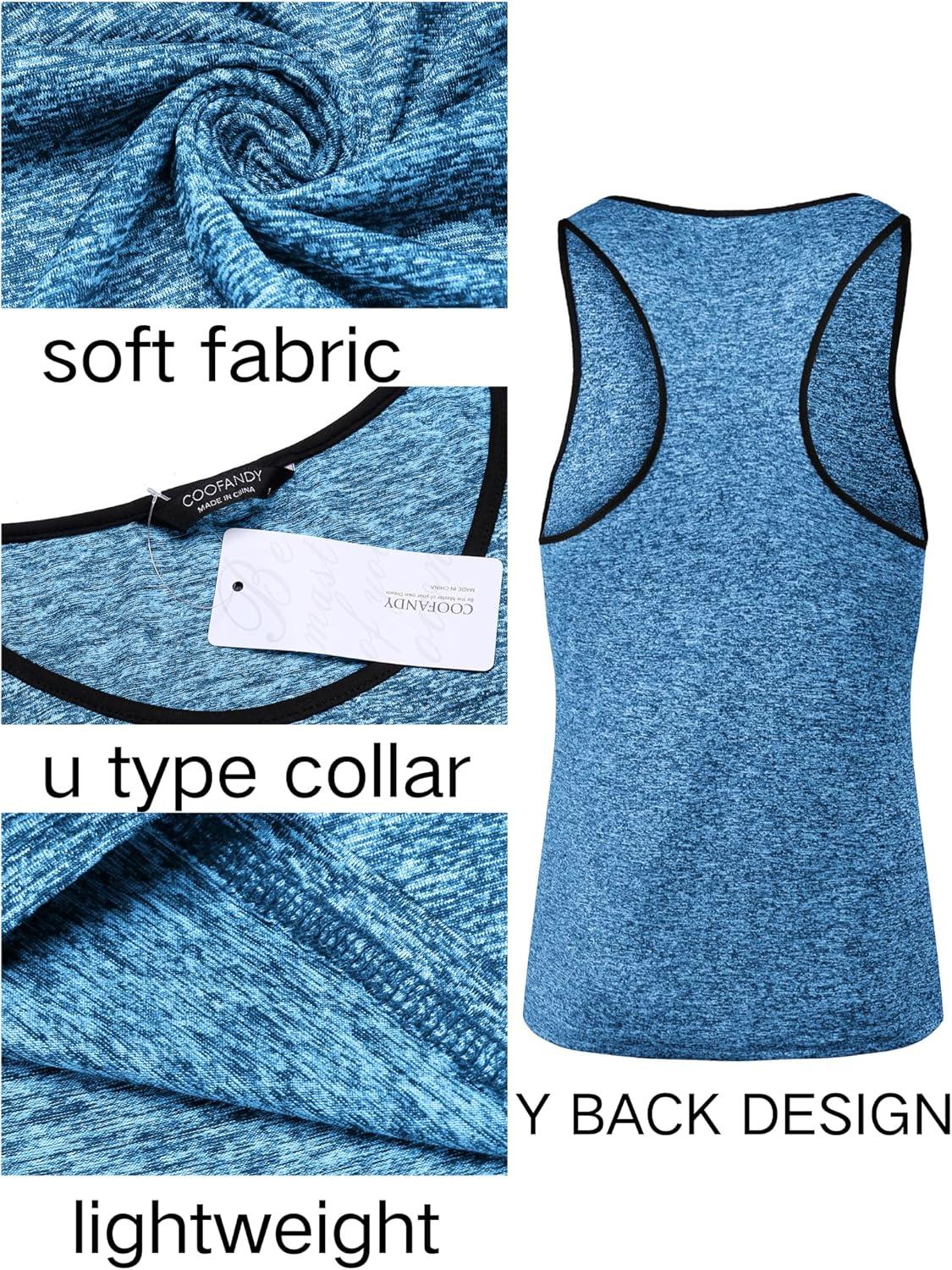 COOFANDY Men’s 3 Pack Gym Tank Tops Y-Back Workout Muscle Tee Sleeveless Fitness Bodybuilding T Shirts(Black/Blue/Navy Blue)