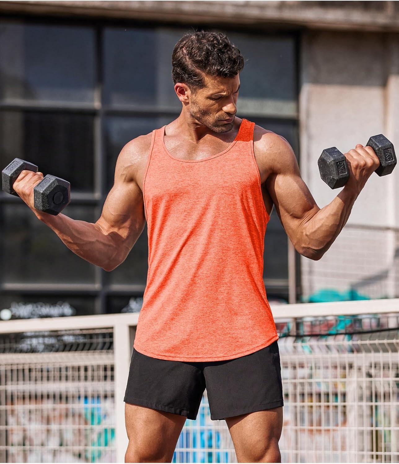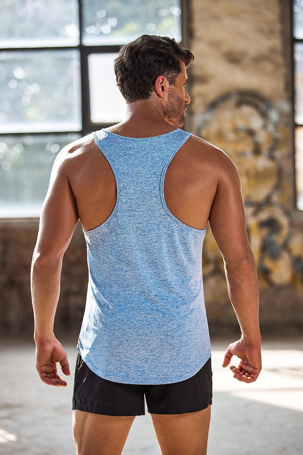 COOFANDY Men’s 3 Pack Gym Tank Tops Y-Back Workout Muscle Tee Training Bodybuilding Fitness Sleeveless T Shirts(3 Pack-green/Orange Red/Sky Blue)