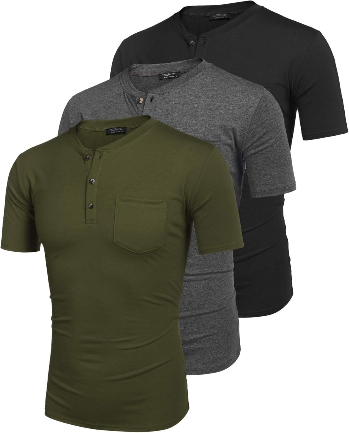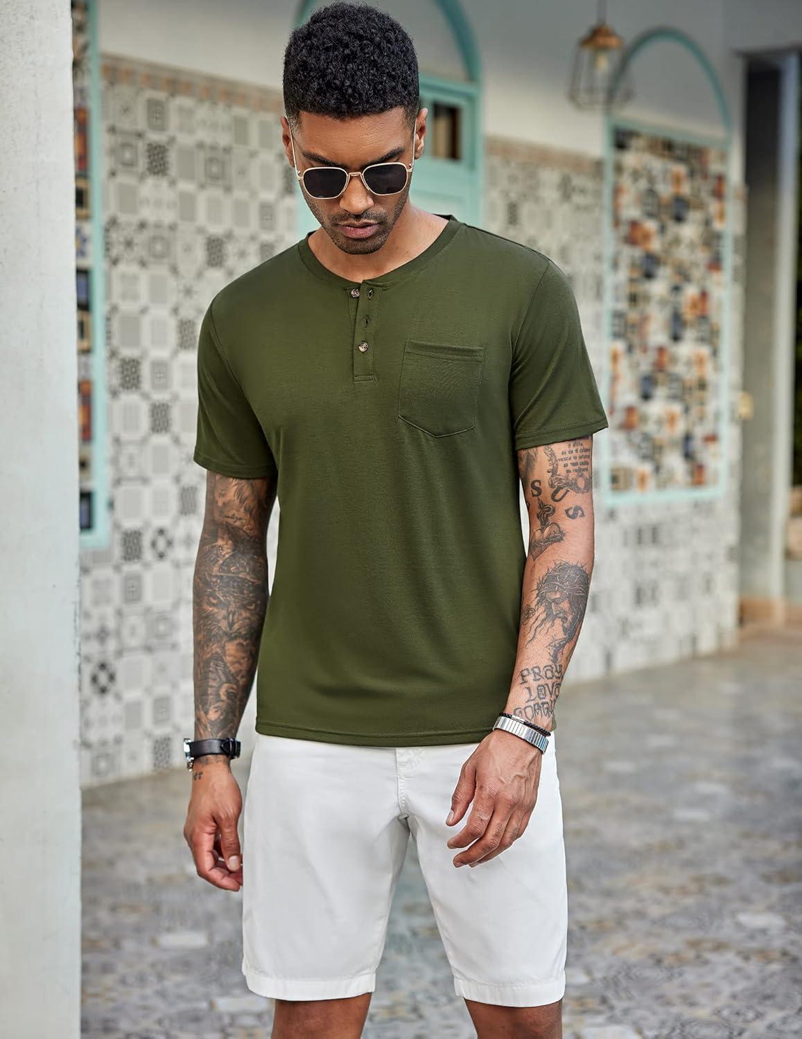 COOFANDY Men’s 3 Pack Henley Shirts Short Sleeve Casual Basic Tees Classic Henley Summer Solid T Shirts with Pocket(01_army Green/Dark Gray/Black)