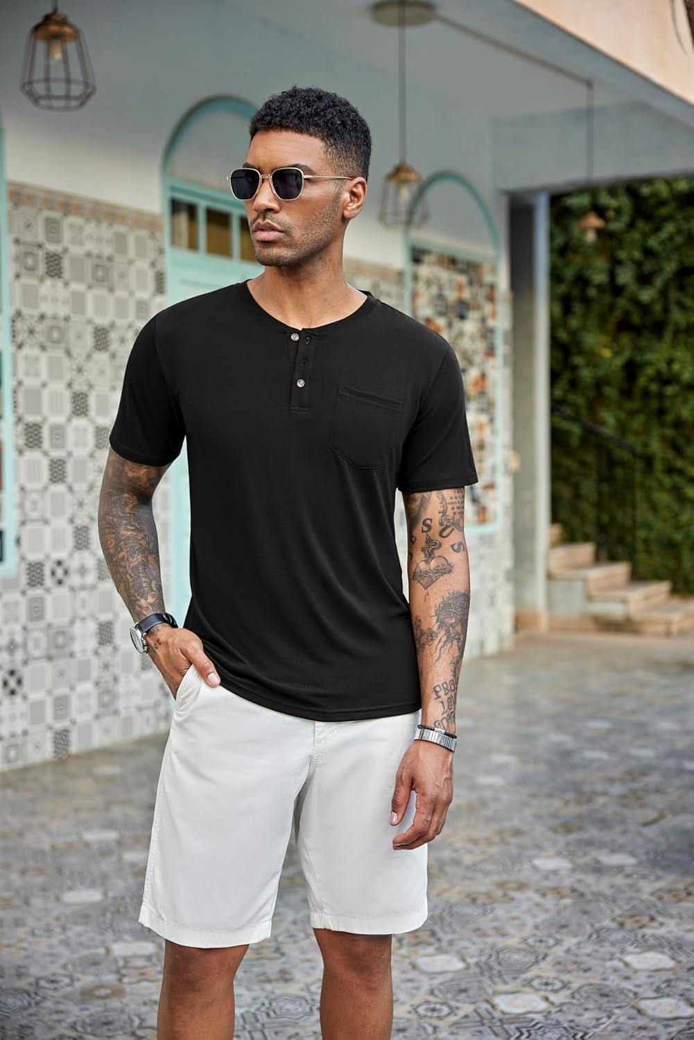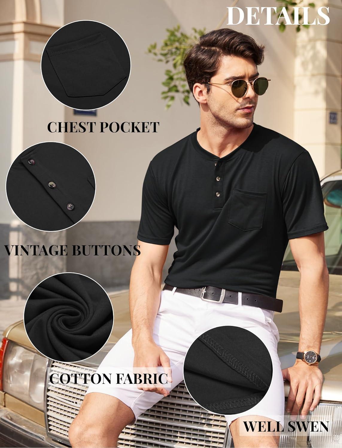 COOFANDY Men's 3 Pack Henley Shirts Short Sleeve Casual Basic Tees Classic Henley Summer Solid T Shirts with Pocket(1 Pack: Black)