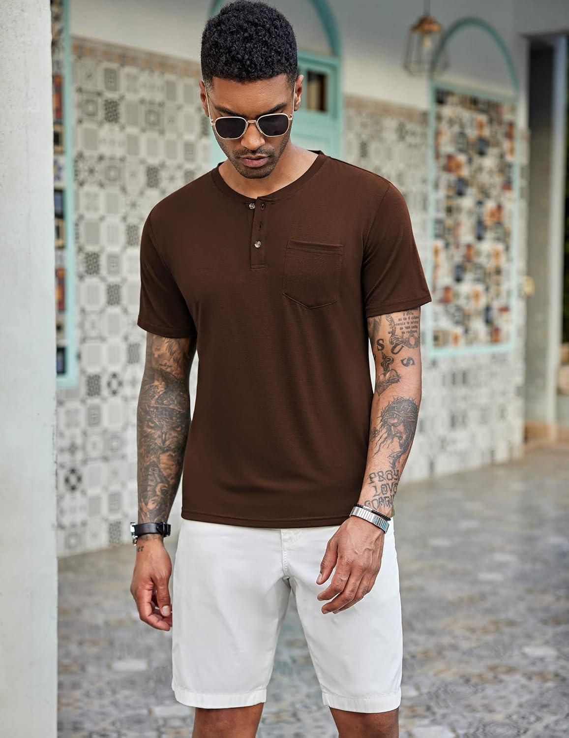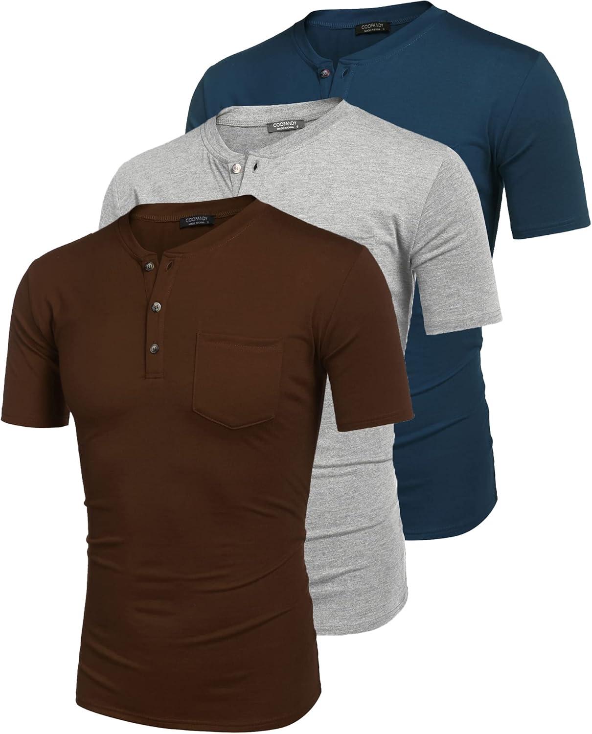 Don’t miss out on our limited-time offer: buy COOFANDY Men’s 3 Pack Henley Shirts Short Sleeve Casual Basic Tees Classic Henley Summer Solid T Shirts with Pocket(Peacock Blue/Coffee/Gray), get a free {accessory}!