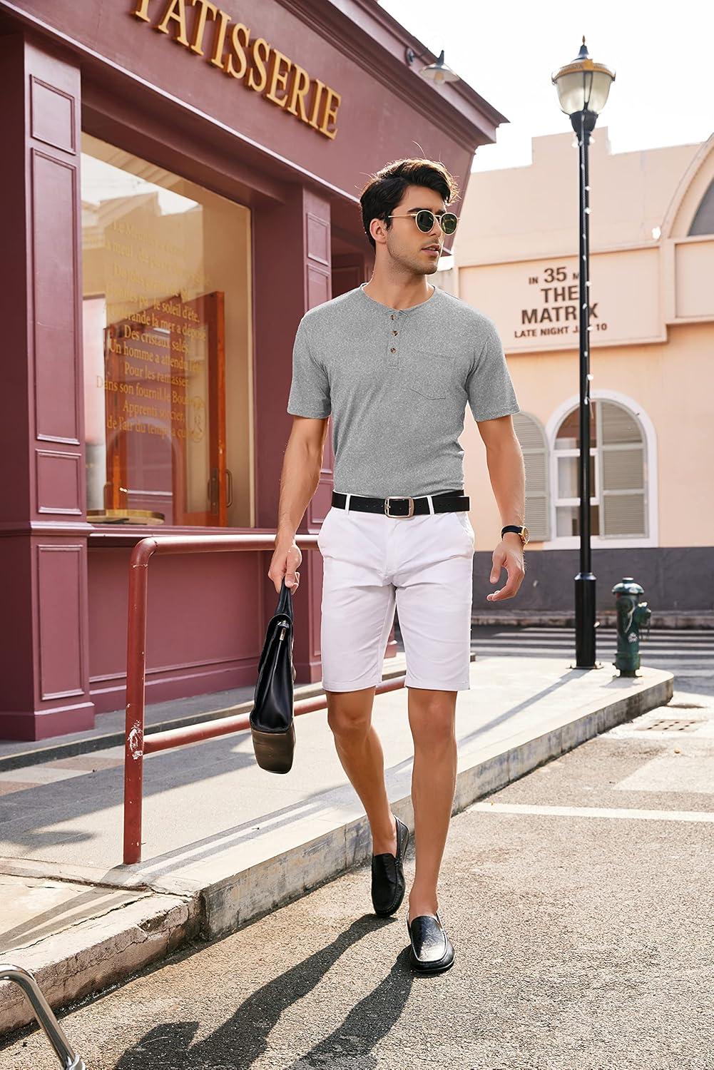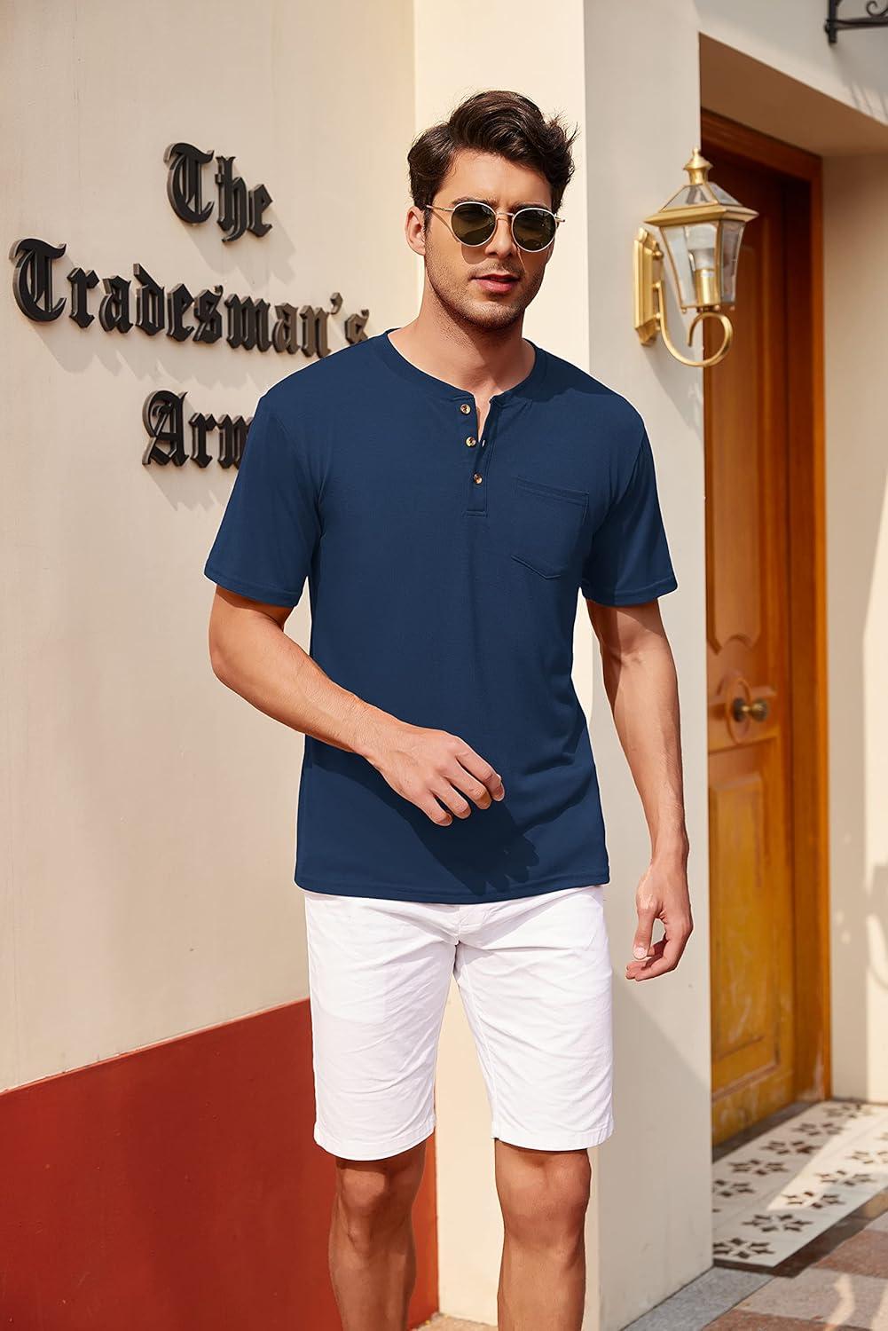 COOFANDY Men’s 3 Pack Henley Shirts Short Sleeve Casual Basic Tees Classic Henley Summer Solid T Shirts with Pocket(Light Green/Sky Blue/Navy Henley)