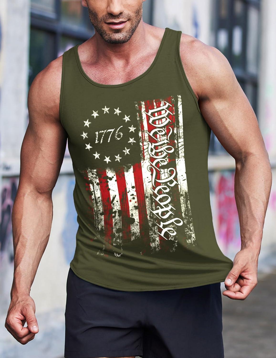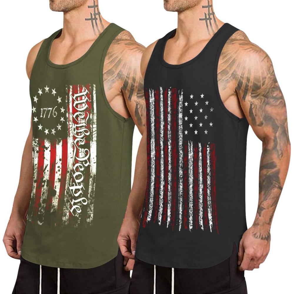 COOFANDY Men's 3 Pack Quick Dry Workout Tank Top Gym Muscle Tee Fitness Bodybuilding Sleeveless T Shirt(Flag-black/Green)