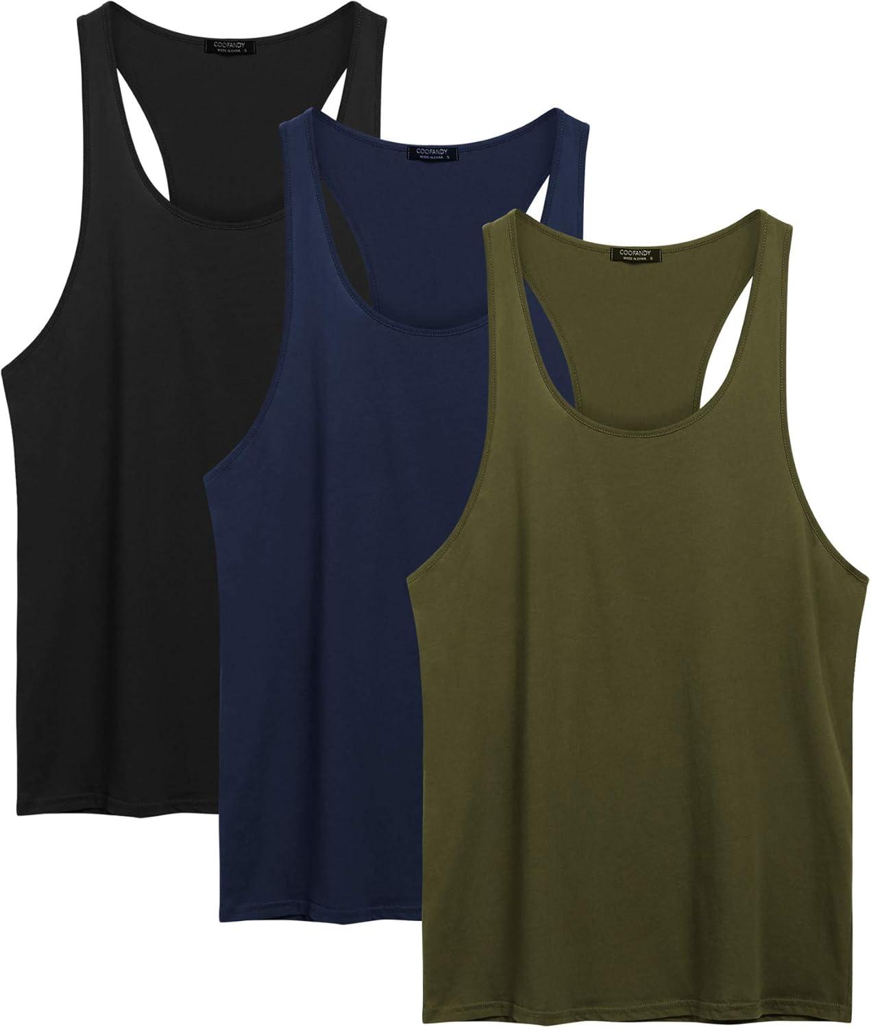 COOFANDY Men's 3 Pack Tank Tops Cotton Performance Sleeveless Casual Classic T Shirts(Black/Nave Blue/Army Green)