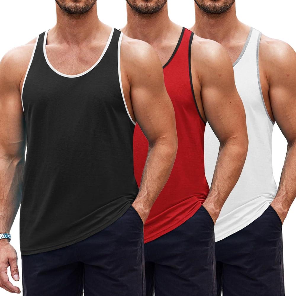 COOFANDY Men's 3 Pack Tank Tops Cotton Performance Sleeveless Casual Classic T Shirts(Blackwhitered)