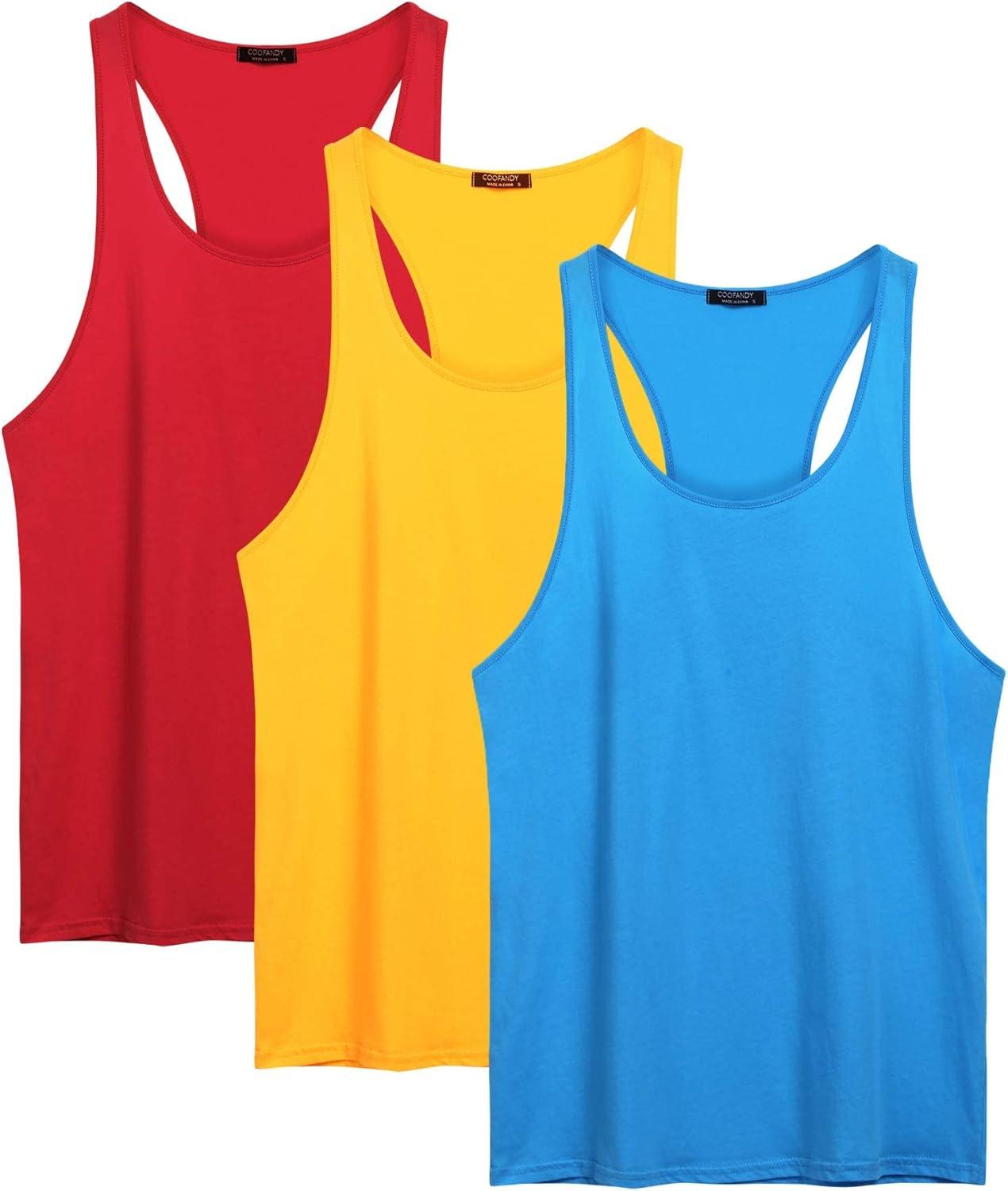 COOFANDY Men's 3 Pack Tank Tops Cotton Performance Sleeveless Casual Classic T Shirts(Blue/Red/Yellow)