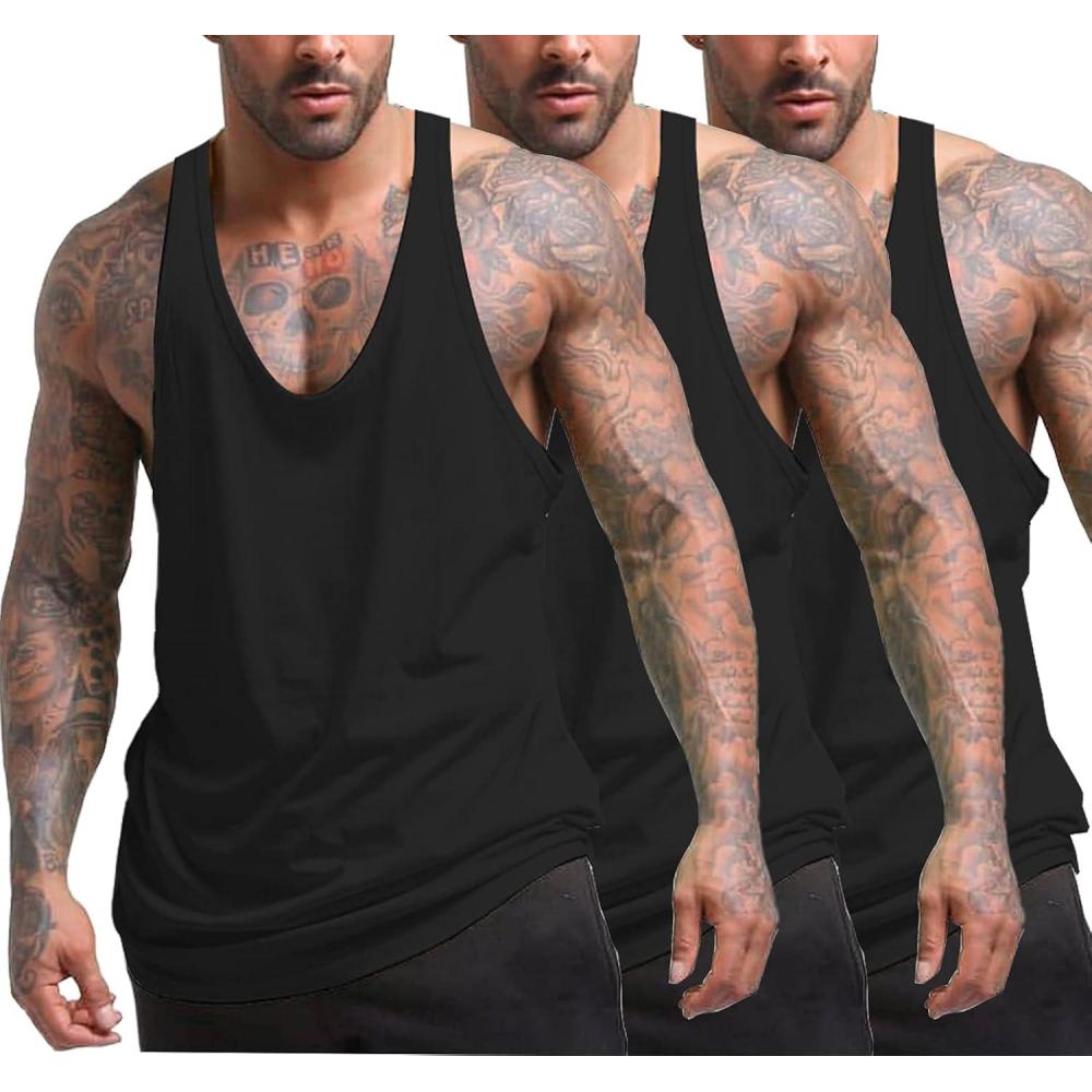 COOFANDY Men’s 3 Pack Tank Tops Gym Workout Shirt Y-Back Sleeveless Muscle Fitness Bodybuilding Tank Shirts(Black/Black/Black)