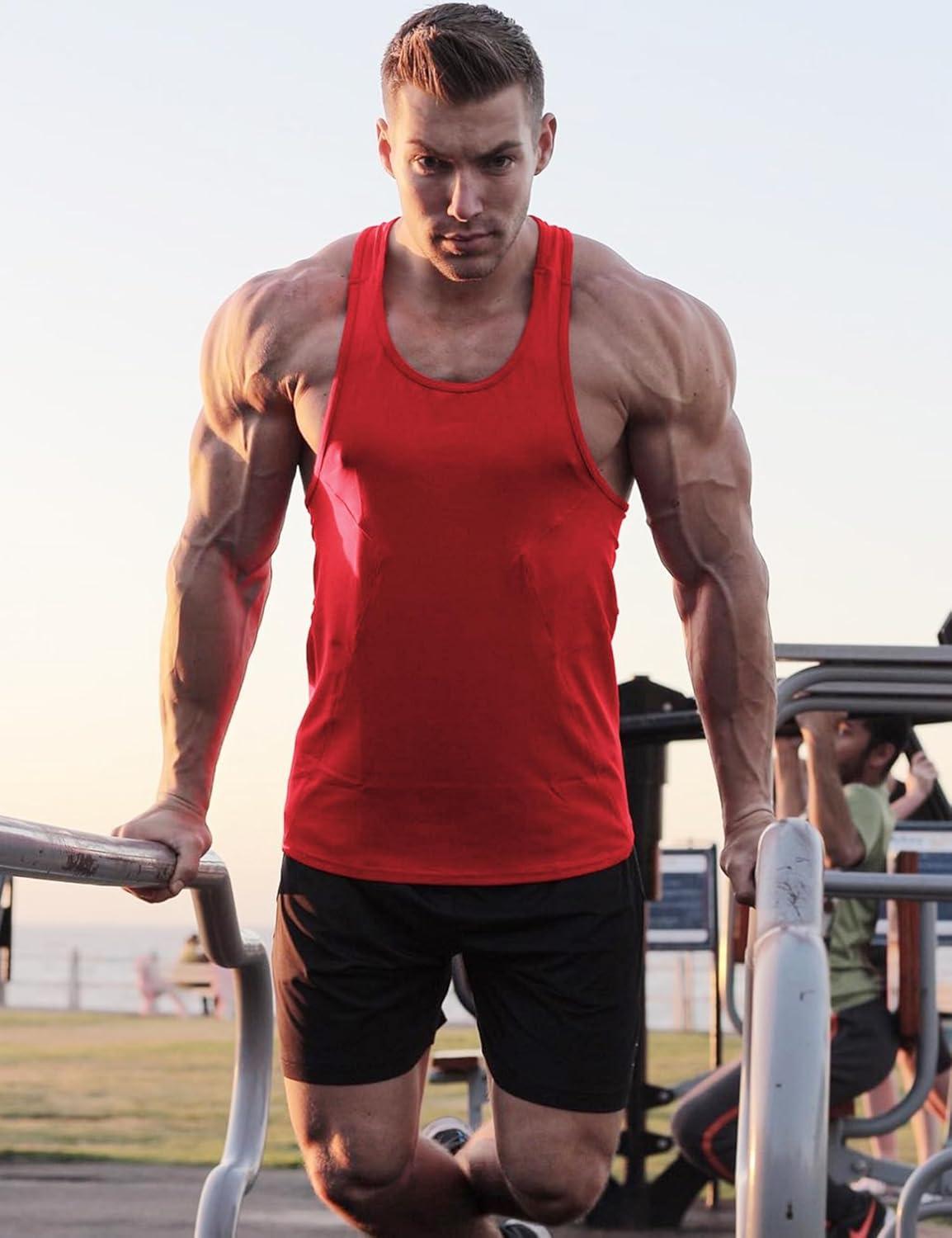 COOFANDY Men’s 3 Pack Tank Tops Gym Workout Shirt Y-Back Sleeveless Muscle Fitness Bodybuilding Tank Shirts(Black/Red/Dark Gray)