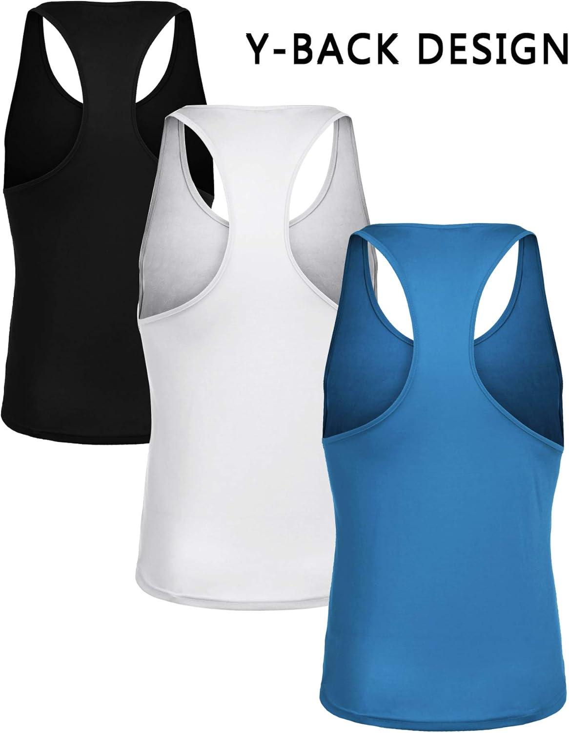 COOFANDY Men’s 3 Pack Tank Tops Gym Workout Shirt Y-Back Sleeveless Muscle Fitness Bodybuilding Tank Shirts(Black/White/Blue)