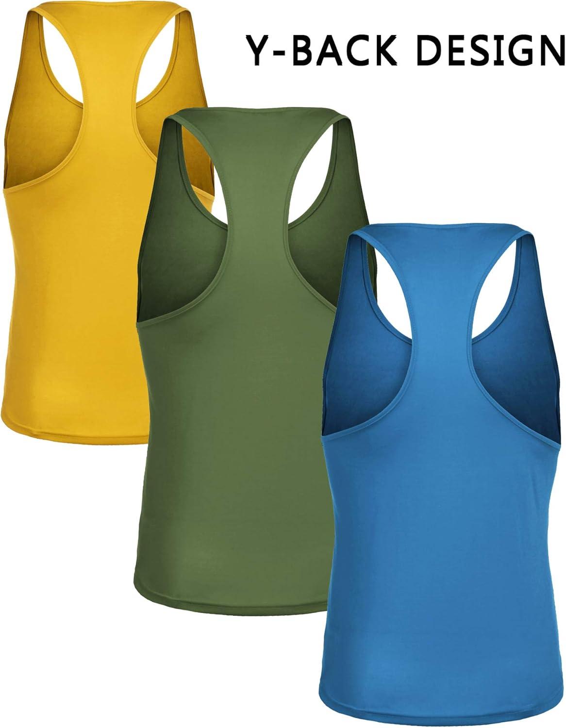 COOFANDY Men’s 3 Pack Tank Tops Gym Workout Shirt Y-Back Sleeveless Muscle Fitness Bodybuilding Tank Shirts(Blue/Yellow/Army Green)