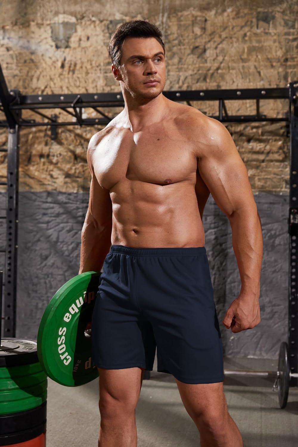 COOFANDY Men’s 3 Pack Workout Gym Shorts Mesh Athletic Shorts Lightweight Bodybuilding Training Short Pants with Pockets(Camo / Khaki / Navy Blue)