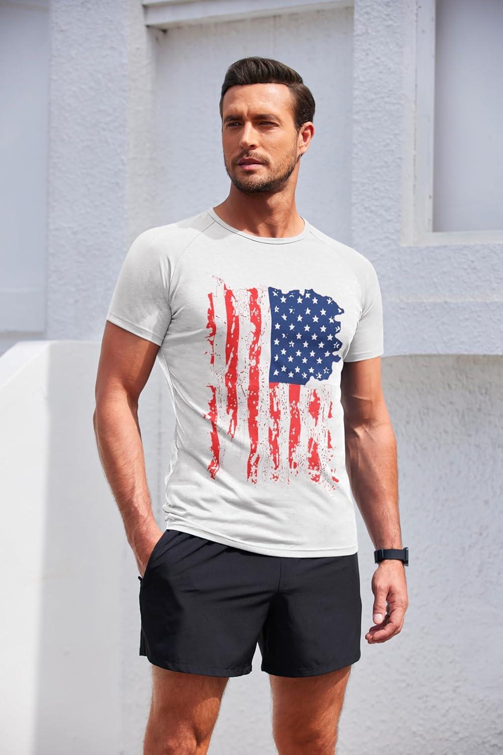 imageCOOFANDY Mens 3 Pack Workout T Shirts Short Sleeve Gym Bodybuilding Muscle Shirt Base Layer Fitness Tee TopsAmerican Flag White