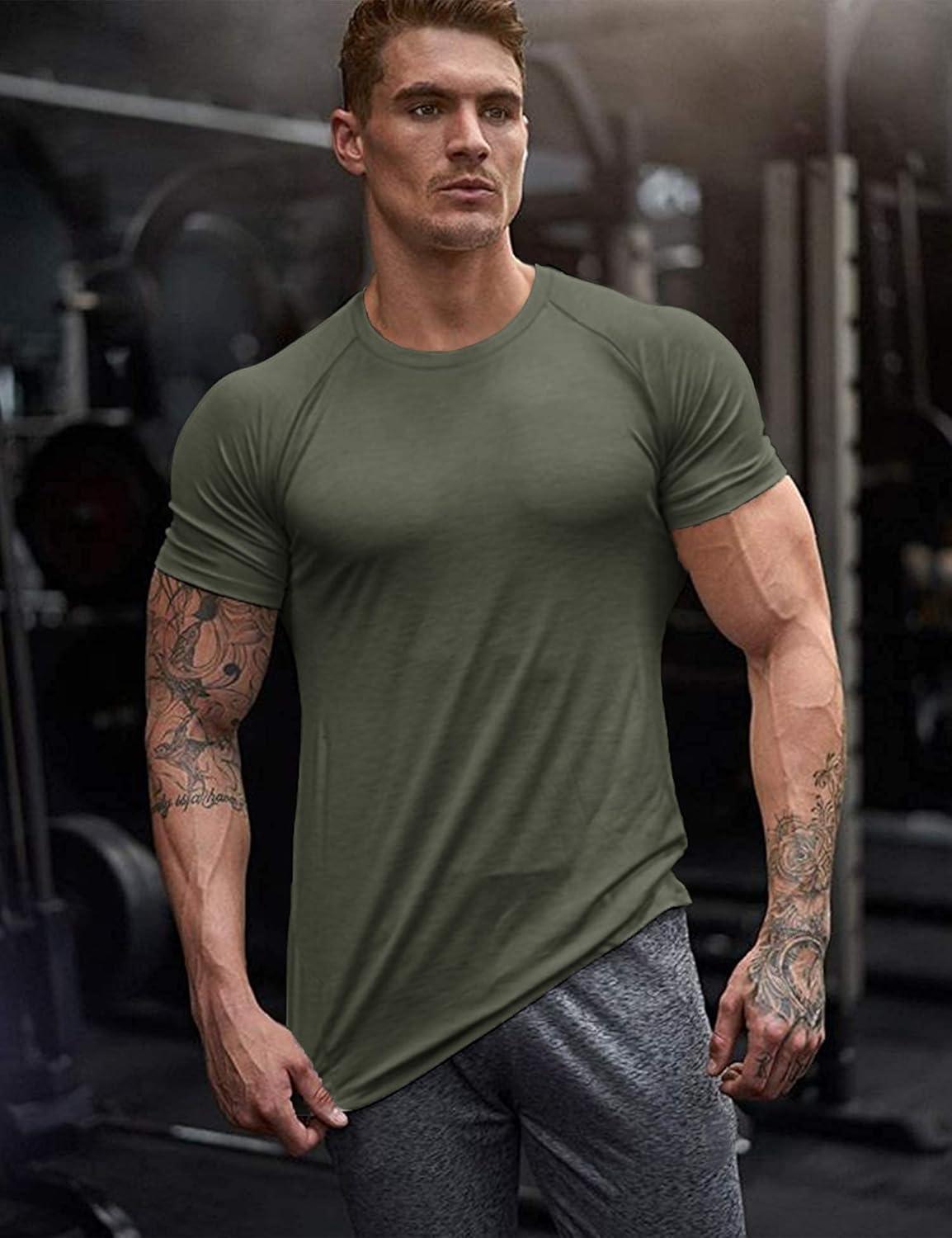 COOFANDY Men’s 3 Pack Workout T Shirts Short Sleeve Gym Bodybuilding Muscle Shirt Base Layer Fitness Tee Tops(Black/Dark Grey/Olive Green)