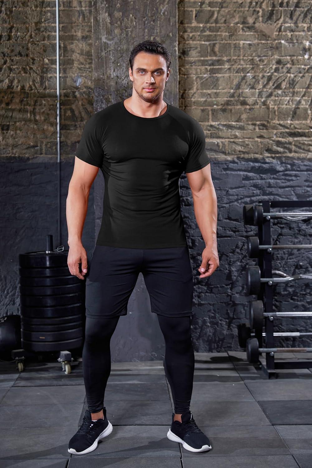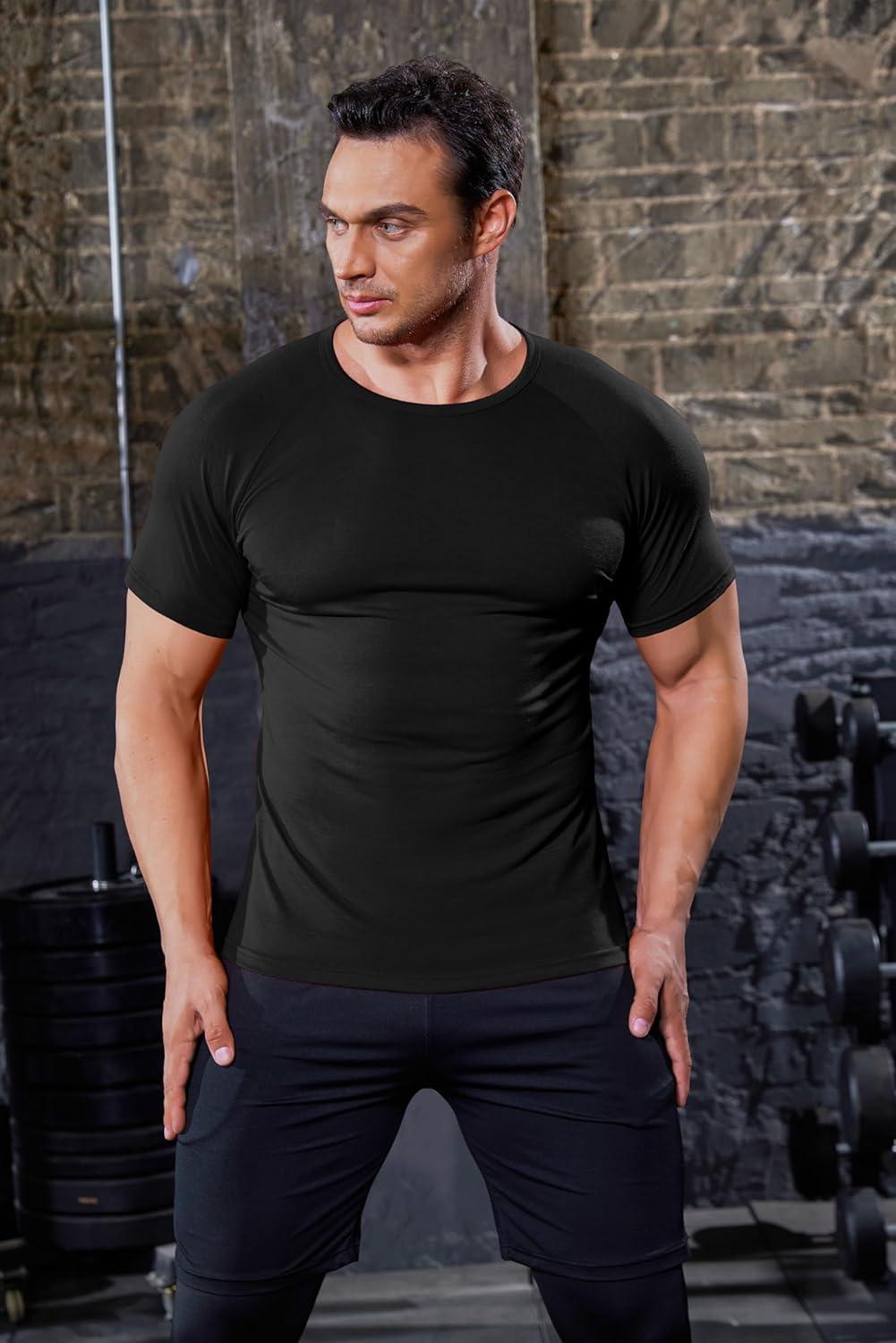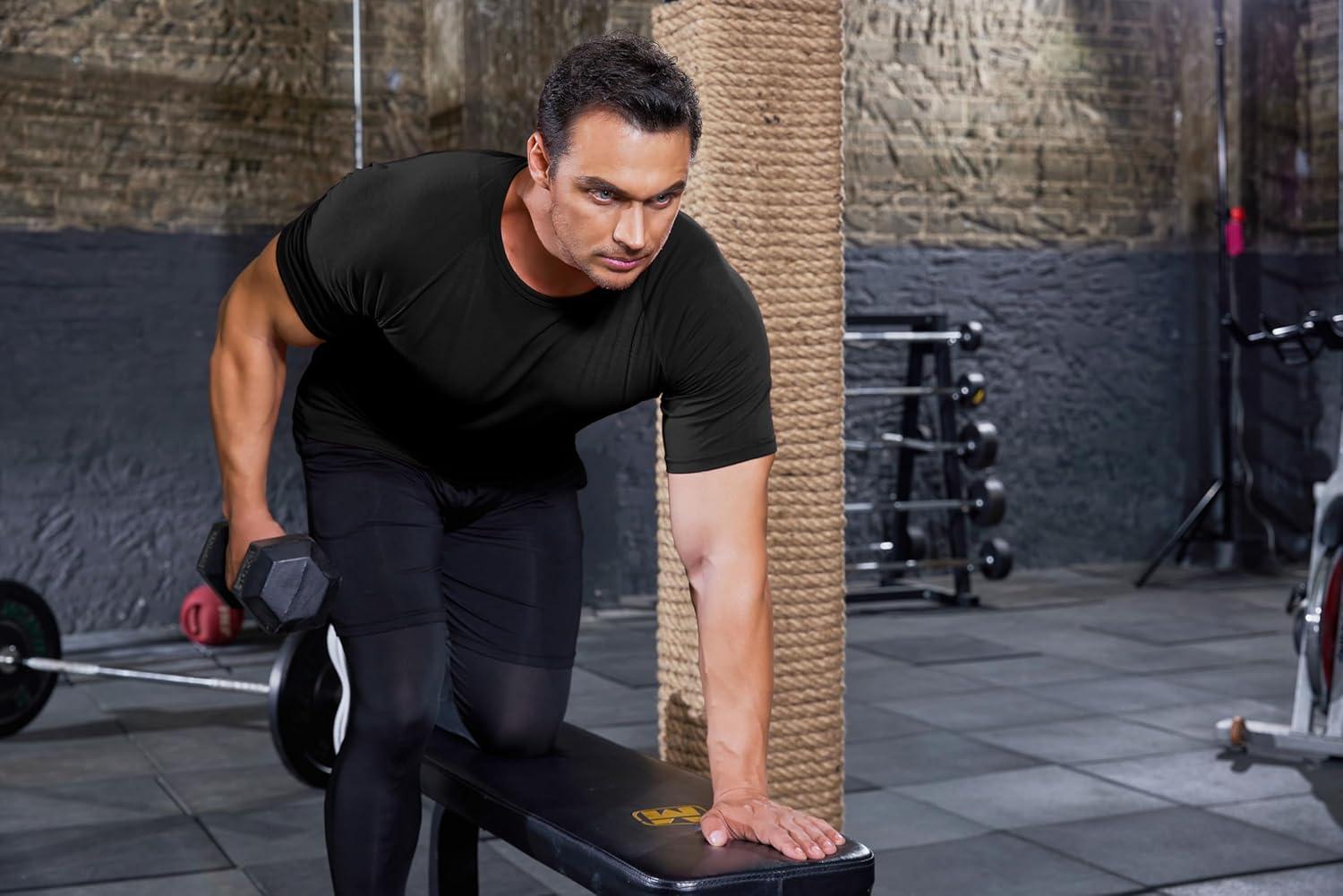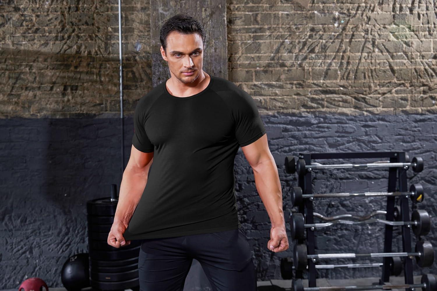 COOFANDY Men's 3 Pack Workout T Shirts Short Sleeve Gym Bodybuilding Muscle Shirt Base Layer Fitness Tee Tops(Black)