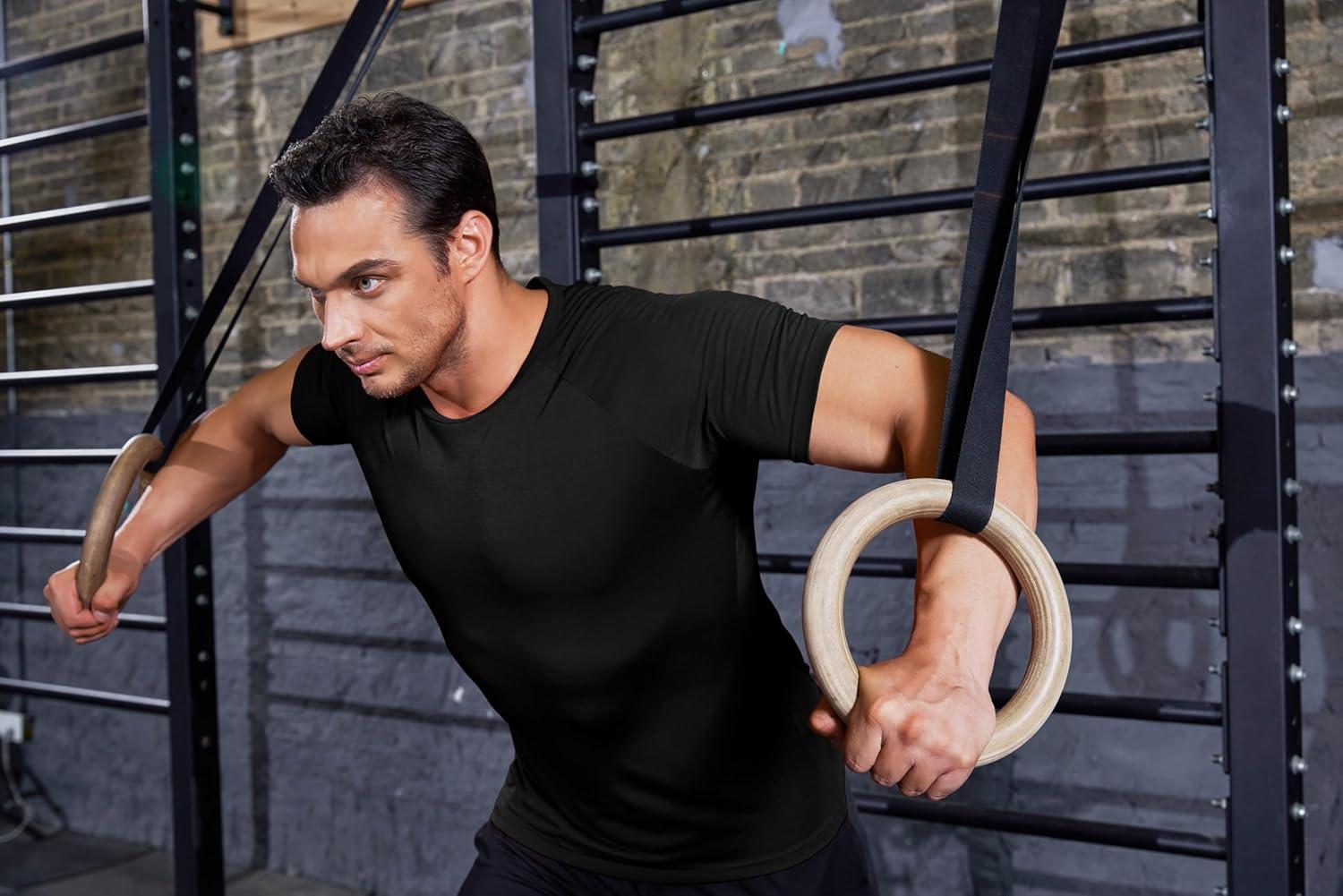 COOFANDY Men’s 3 Pack Workout T Shirts Short Sleeve Gym Bodybuilding Muscle Shirt Base Layer Fitness Tee Tops(Black)