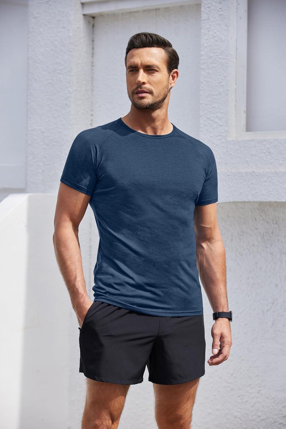 COOFANDY Men’s 3 Pack Workout T Shirts Short Sleeve Gym Bodybuilding Muscle Shirt Base Layer Fitness Tee Tops(Navy Blue)