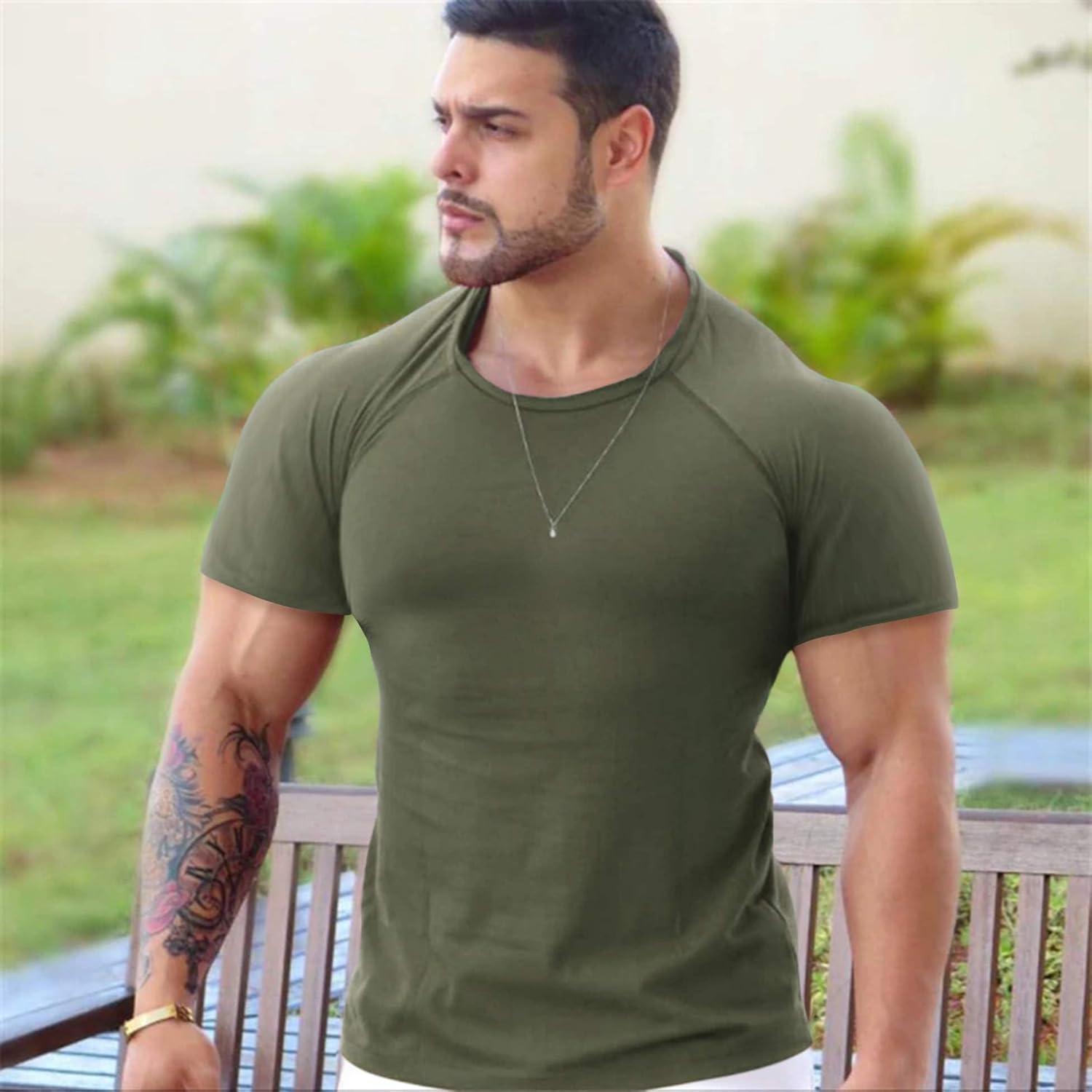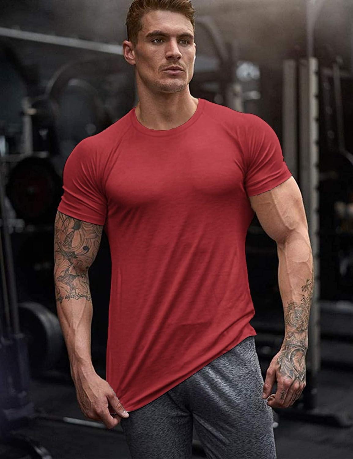 COOFANDY Men’s 3 Pack Workout T Shirts Short Sleeve Gym Bodybuilding Muscle Shirt Base Layer Fitness Tee Tops(Red/Olive Green/Black)
