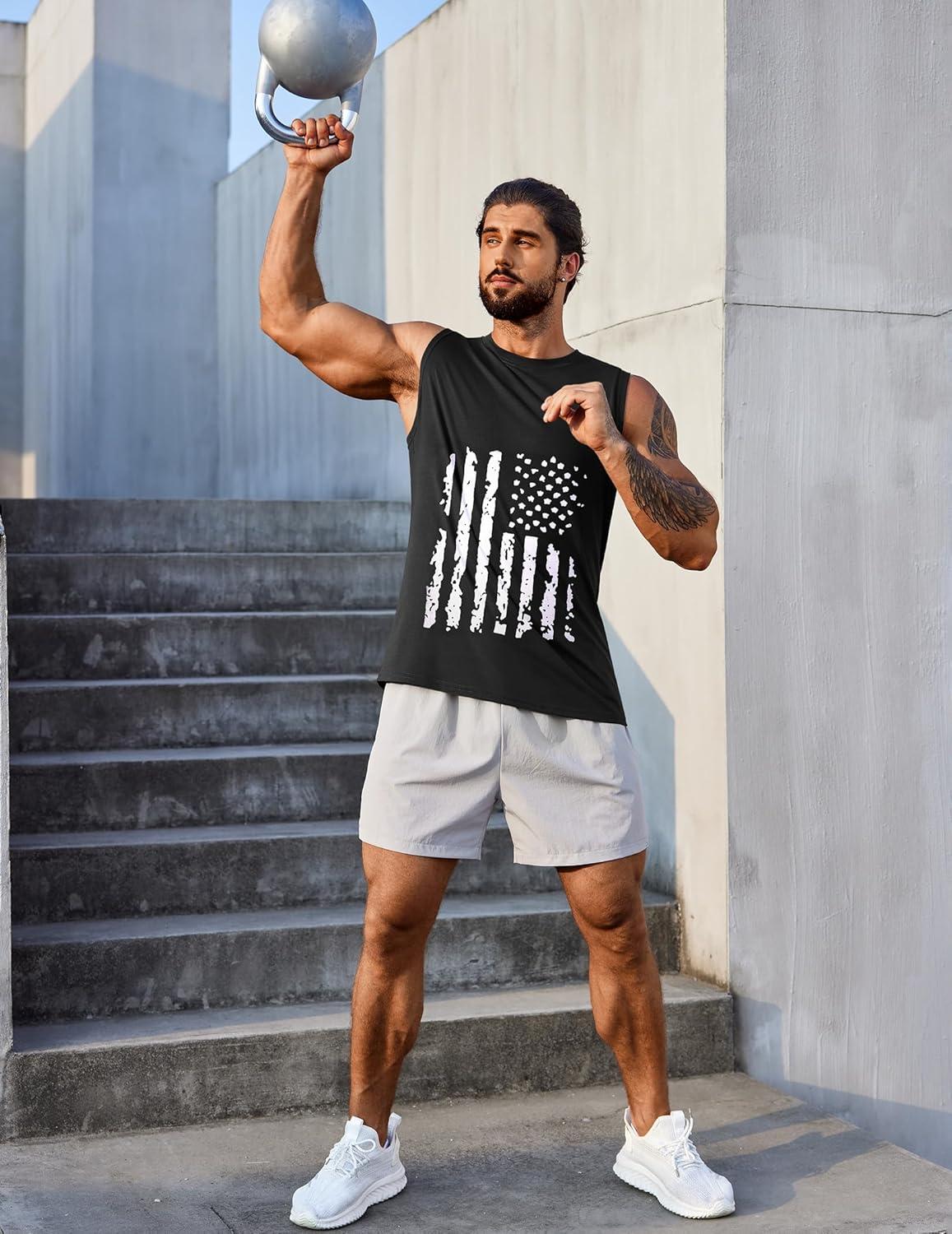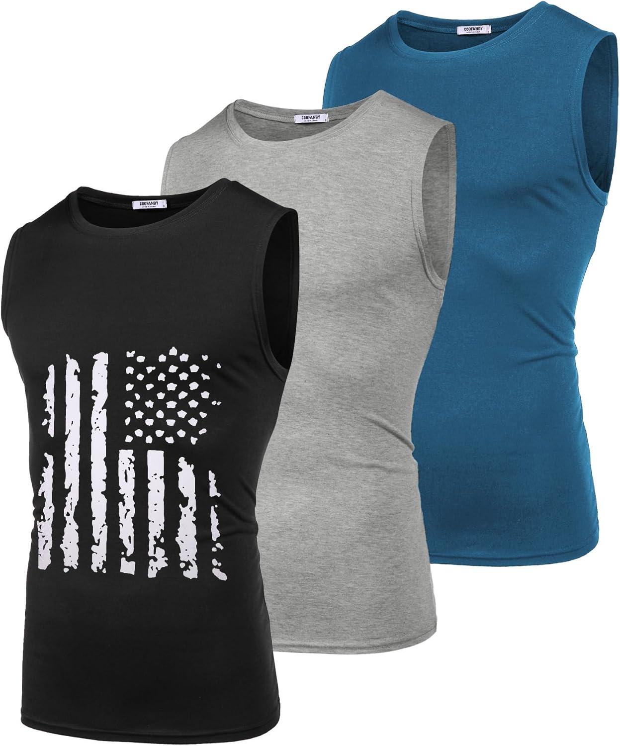 COOFANDY Men's 3 Pack Workout Tank Tops Gym Muscle Tee Bodybuilding Fitness Sleeveless T Shirts(Black Flag/Light Grey/Peacock Blue)