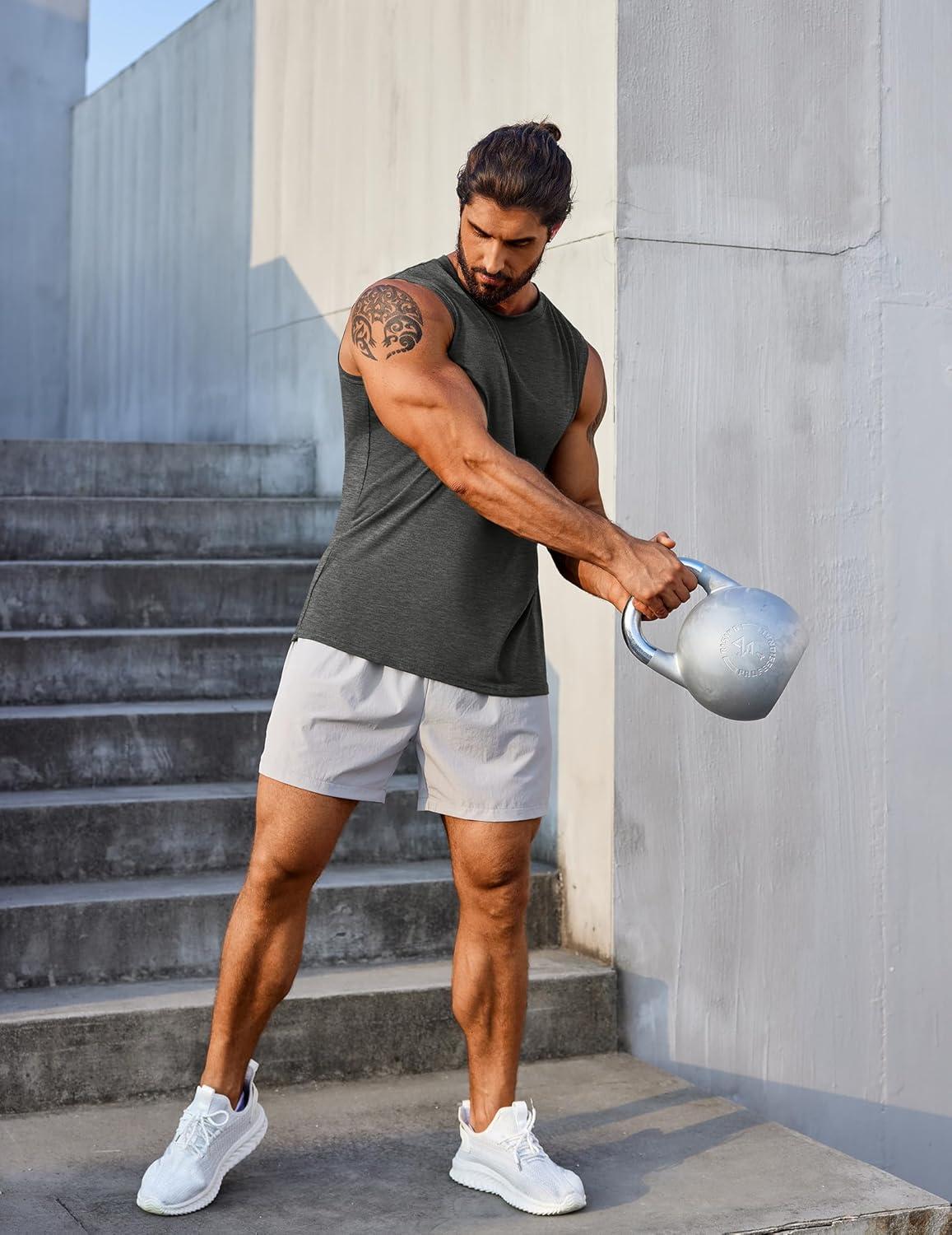 COOFANDY Men’s 3 Pack Workout Tank Tops Gym Muscle Tee Bodybuilding Fitness Sleeveless T Shirts(Black/White/Dark Grey)