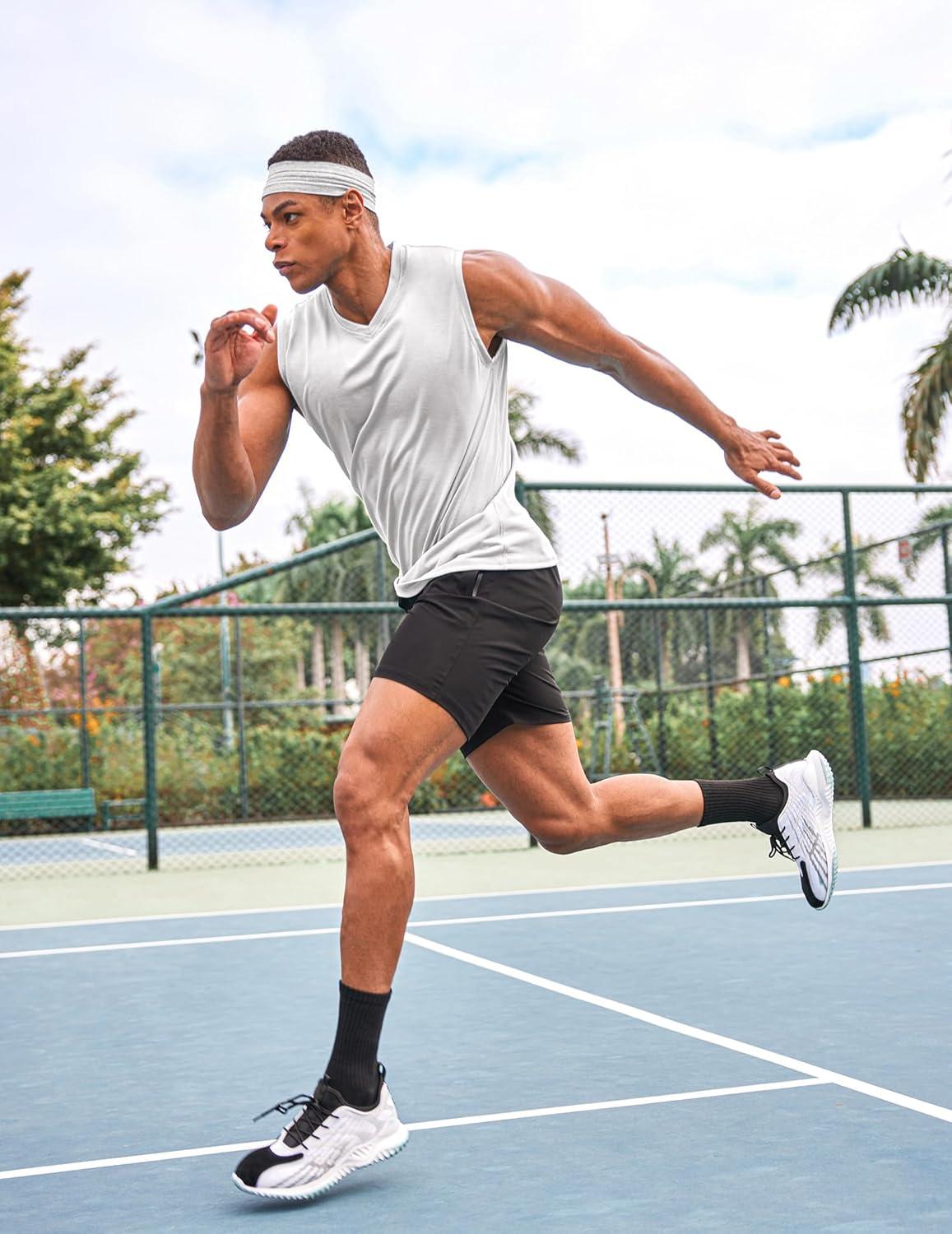 COOFANDY Men’s 3 Pack Workout Tank Tops Gym Sleeveless Shirts V Neck Bodybuilding Muscle Tee Shirt(Dark Grey/Red/Black)