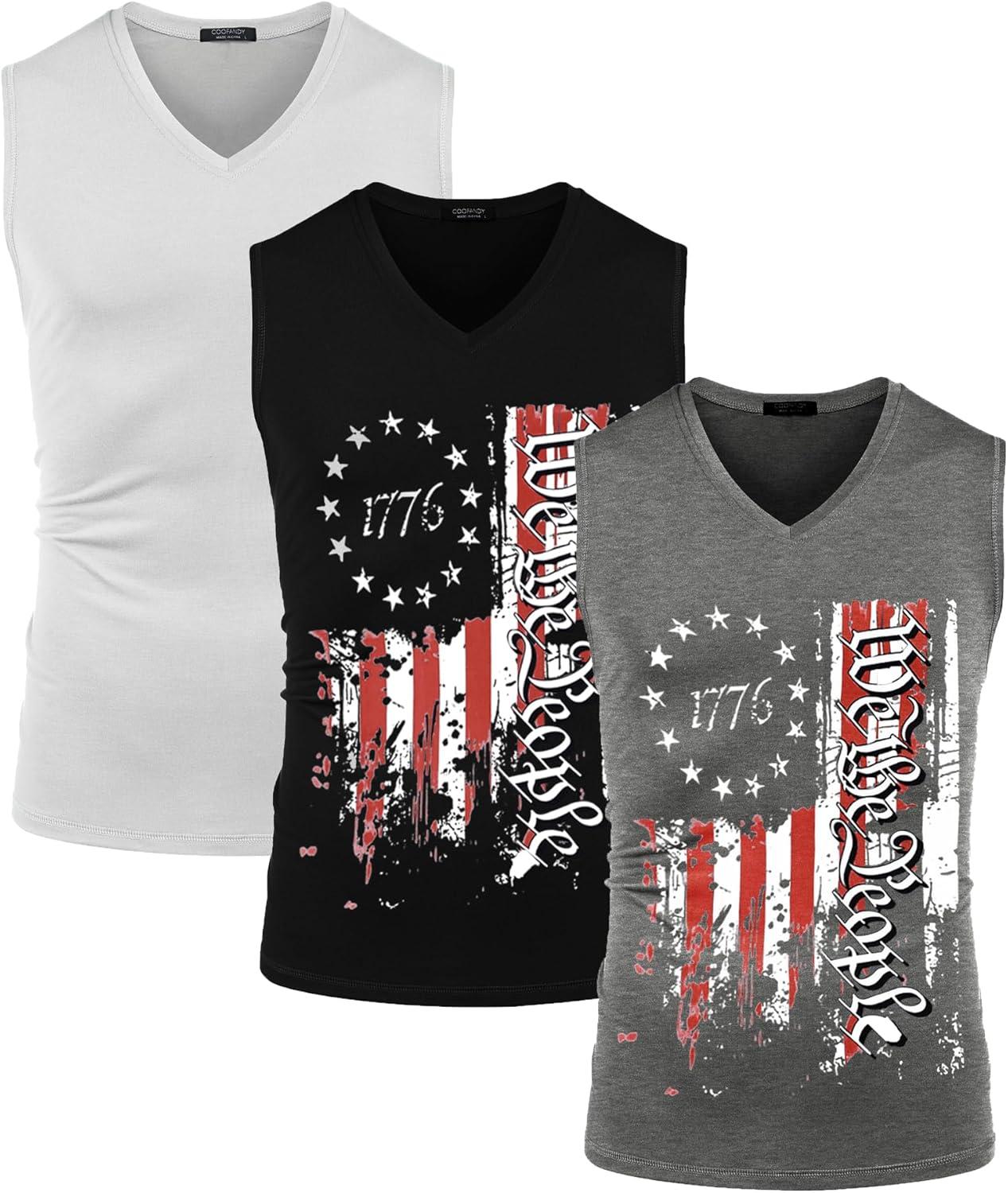 COOFANDY Men’s 3 Pack Workout Tank Tops Gym Sleeveless Shirts V Neck Bodybuilding Muscle Tee Shirt(Black Flag/Grey Flag/Pure White)