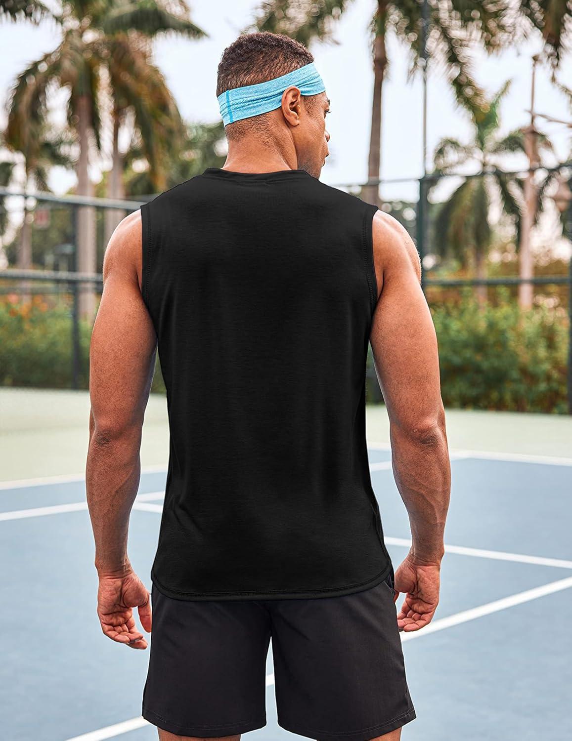 COOFANDY Men’s 3 Pack Workout Tank Tops Gym Sleeveless Shirts V Neck Bodybuilding Muscle Tee Shirt(Dark Grey/Red/Black)