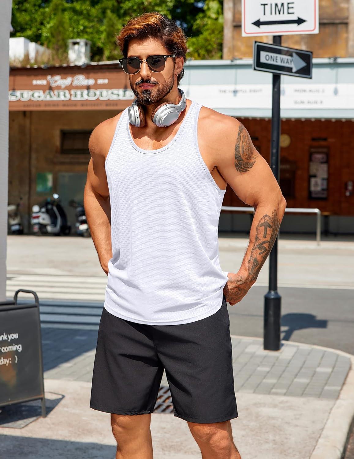 COOFANDY Mens workout tank tops are made of 100% Polyester.Mens sleeveless bodybuilding shirts are crafted from soft, high-quality, breathable and moisture-wicking fabric, keep you dry and comfortable. Perfect for hot weather or intense workouts, they provide a cooling effect throughout any activity.