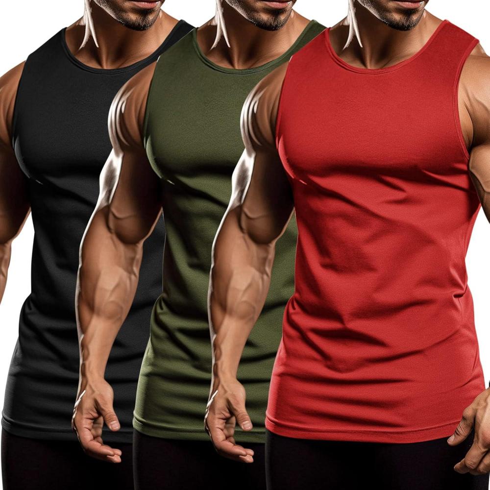 COOFANDY Men's 3 Pack Workout Tank Tops Sleeveless Gym Shirts Bodybuilding Fitness Muscle Tee Shirts(Black/Army Green/Red)