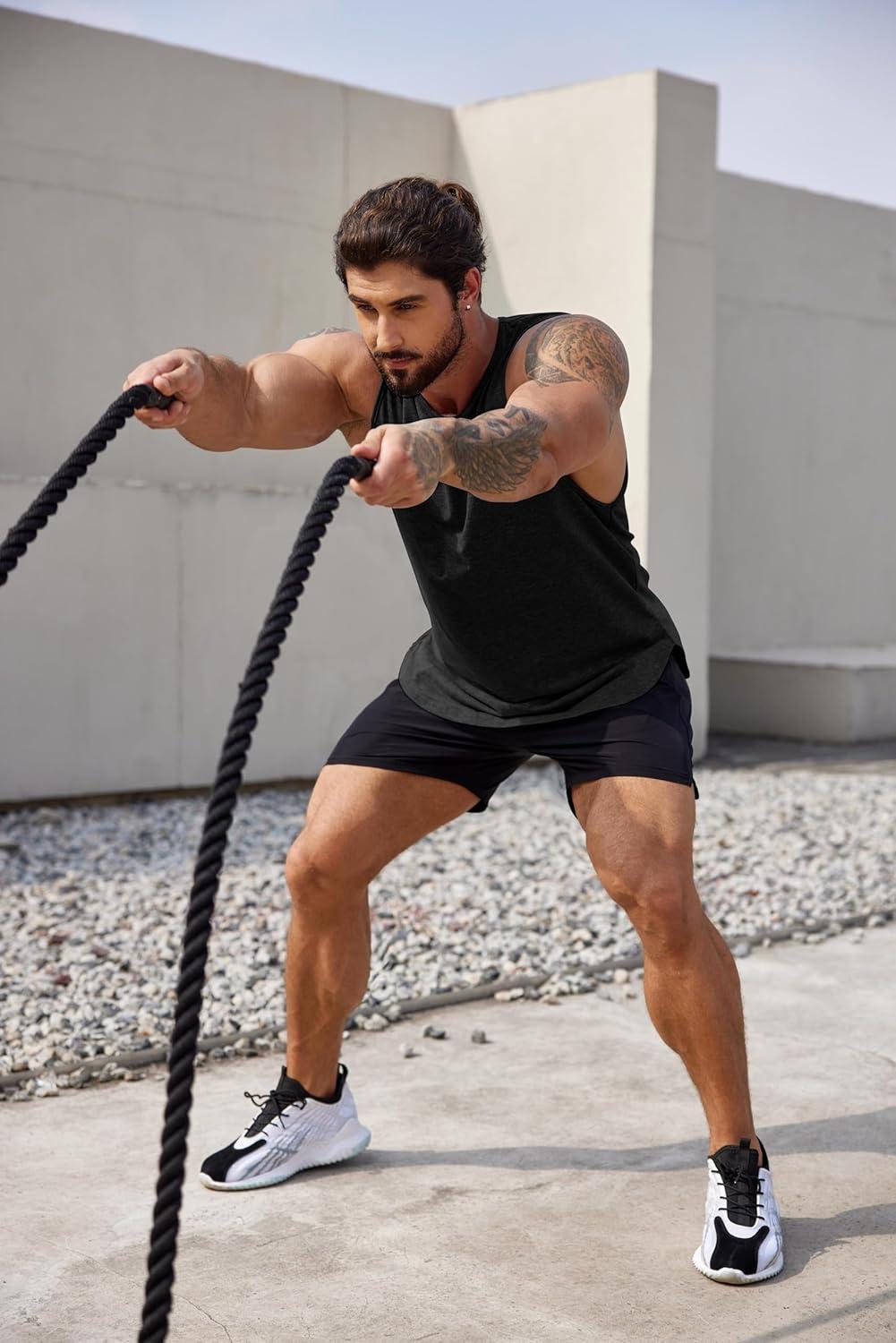 COOFANDY Men’s 3 Pack Workout Tank Tops Sleeveless Gym Shirts Bodybuilding Fitness Muscle Tee Shirts(Black/Navy Blue/Light Grey)