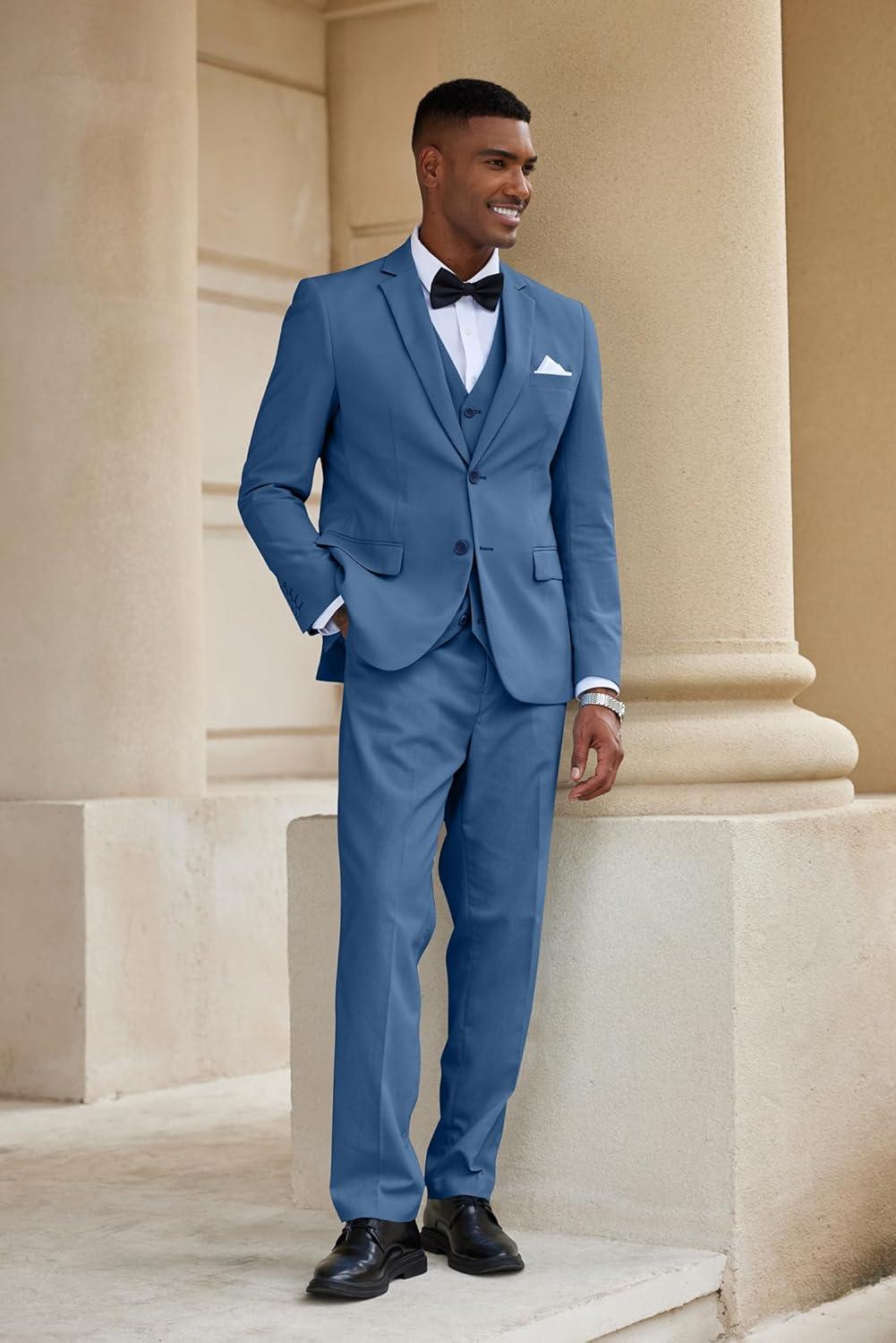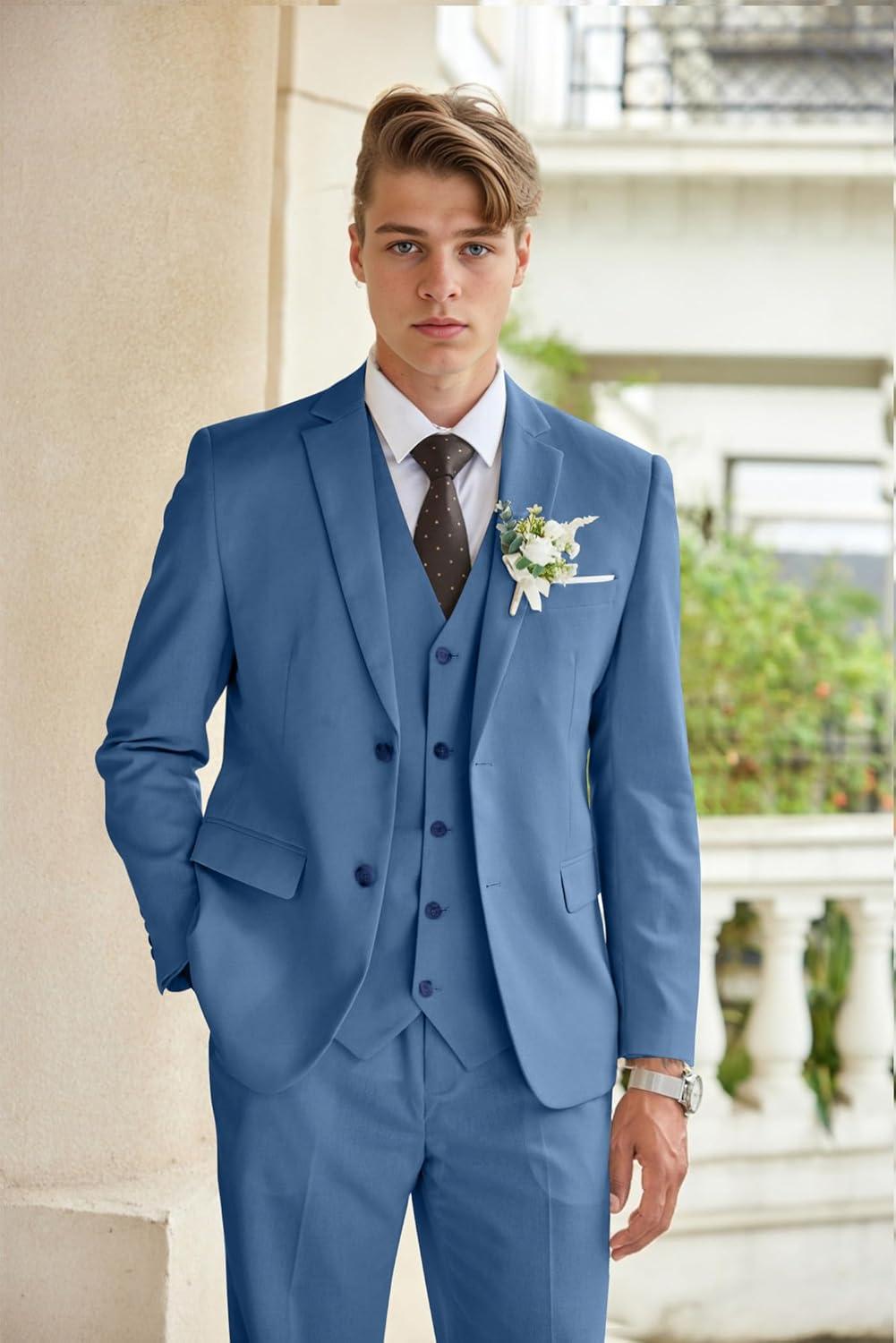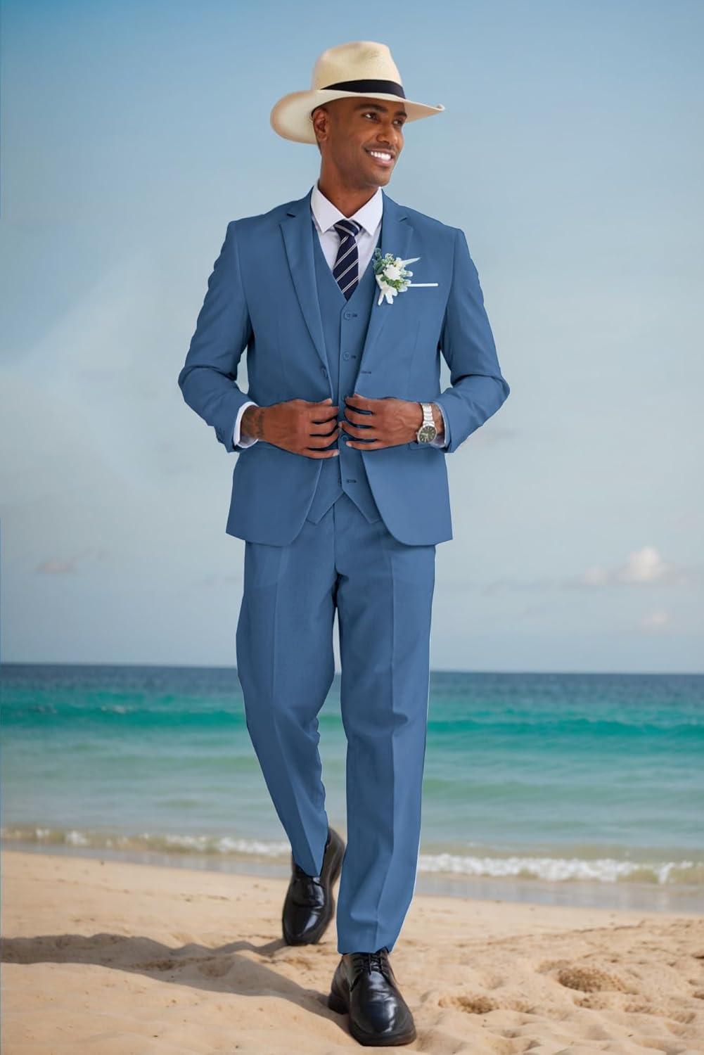 COOFANDY Men’s 3 Piece Linen Suits Casual Lightweight Blazer Jackets Vest Pants Set for Wedding Business Prom(Light Blue)