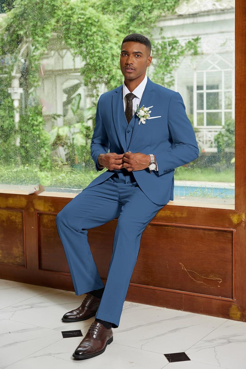 COOFANDY Men’s 3 Piece Linen Suits Casual Lightweight Blazer Jackets Vest Pants Set for Wedding Business Prom(Navy Blue)