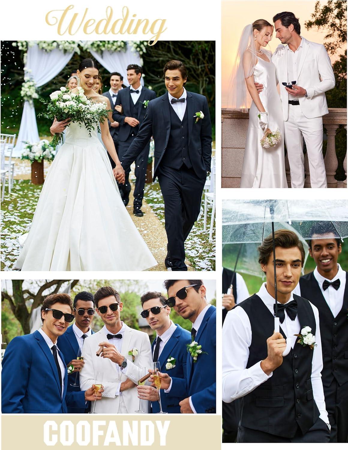 COOFANDY Men’s 3 Piece Wedding Suit Set One Button Slim Fit Jacket Blazer Vest Pants Set Groom Prom Tuxedo Suits(White)